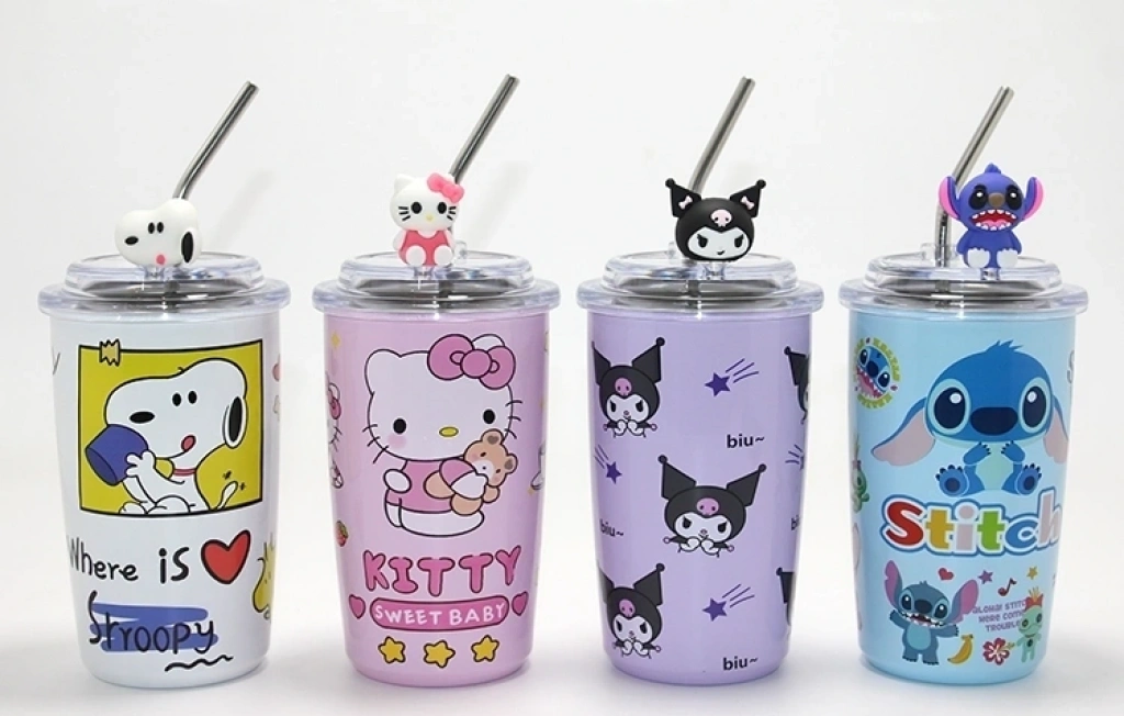 Popüler Karakter Figürlü Isı Muhafazalı Metal Pipetli Çelik Kupa Alk4430