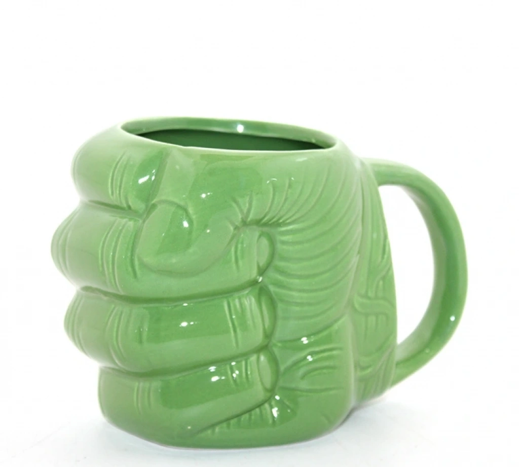 PORSELEN HULK ELİ KUPA BARDAKÜrün ÖzellikleriPorselen Hulk Eli kupa bardak, Marvel’in efsanevi karakteri Hulk’un güçlü yumruğundan esinlenerek tasarlanmıştır. 11x14 cm ölçülerine sahip olup, geniş hacmi ve ergonomik yapısıyla rahat bir tutuş sağlar. Dayanıklı porselen malzemeden üretilmiş olup, sıcak ve soğuk içecekler için uygundur. Hulk’un güçlü yumruğunu yansıtan detaylı tasarımı, koleksiyoncular, çizgi roman hayranları ve Marvel severler için mükemmel bir hediye alternatifidir. Evde, ofiste veya koleksiyon amaçlı kullanım için harika bir seçimdir.Paket İçeriği1 adet Porselen Hulk Eli kupa bardak.