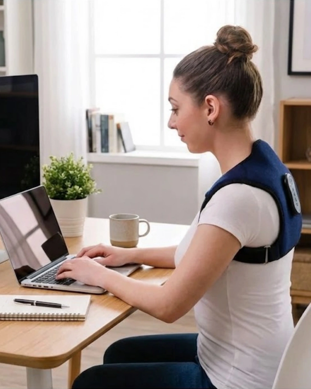 Postür düzeltici masaj kemeri, sırt ve omurga sağlığını desteklemek aıyla geliştirilmiş akıllı bir destek ürünüdür. Entegre sensör sistemi, yanlış duruşu algılayarak titreşimli uyarı verir ve kullanıcıyı doğru pozisyona yönlendirir. Bu özellik, özellikle masa başında uzun süre çalışan kişiler için duruş farkındalığını artırmaya yardımcı olur.Masaj ve ısı terapisi fonksiyonları, kasların rahatlamasını destekler. 3 masaj seviyesi ve 3 farklı ısı ayarı ile kullanım kişiselleştirilebilir. Isı terapisi kan dolaşımını desteklerken titreşimli masaj kas sertliğinin azalmasına katkı sağlar.Ergonomik X tasarımı ve 8 şekilli omuz askıları, omuzları nazikçe geriye yönlendirerek dik duruşu destekler. Hafif ve nefes alabilen yapısı, gün boyu rahat kullanım sunar. Evde, ofiste veya araç kullanırken rahatlıkla tercih edilebilir.