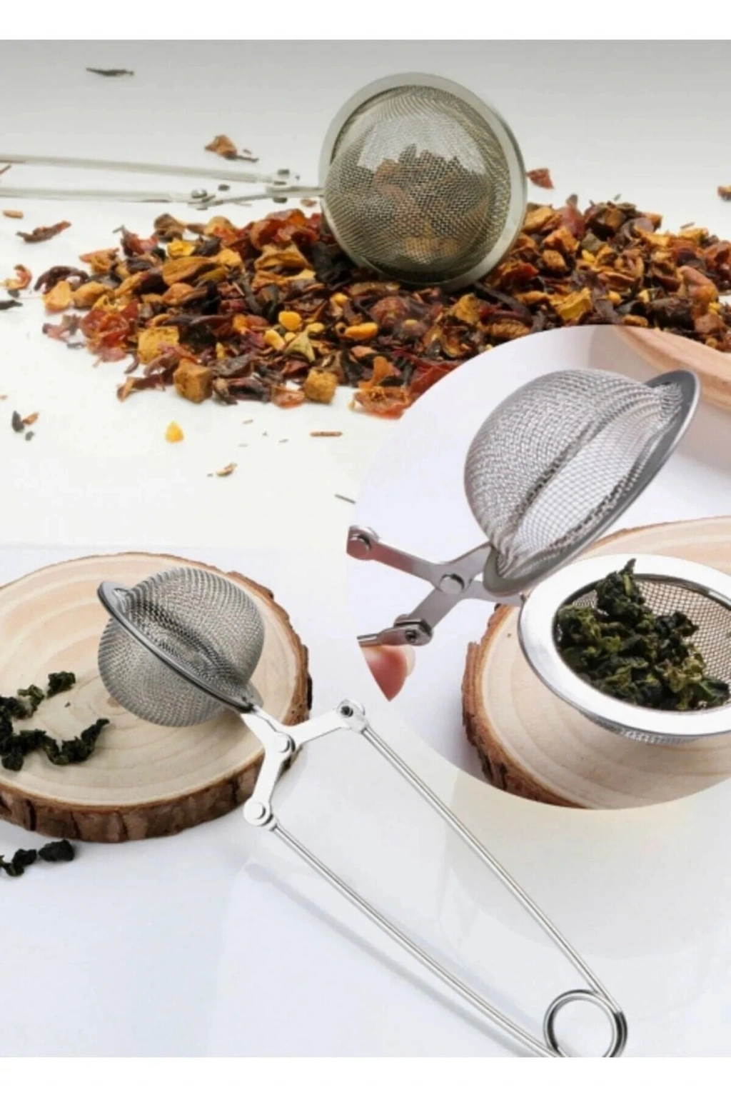 Pratik Paslanmaz Çelik Un Kakao Pudra Şekeri Eleği -Maşalı Bitki Çayı Demleme Süzgeci Metal malzeme