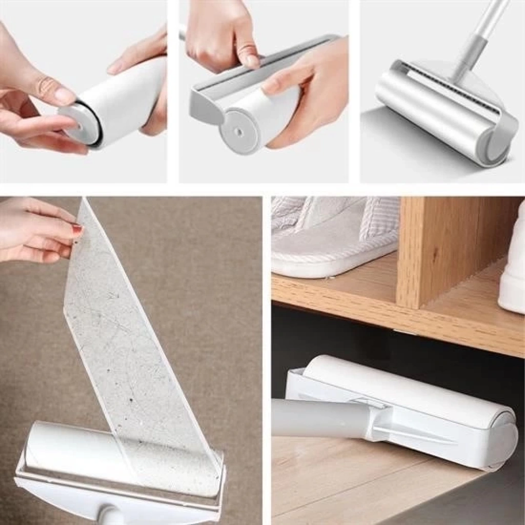 Yapışkanlı tüy rulosu, teleskopik saplı rulo, toz hav temizleyici, evcil hayvan tüy toplayıcı, kıyafet tüy temizleme, 24 cm rulo, yedekli tüy rulosu, pratik temizlik ürünü