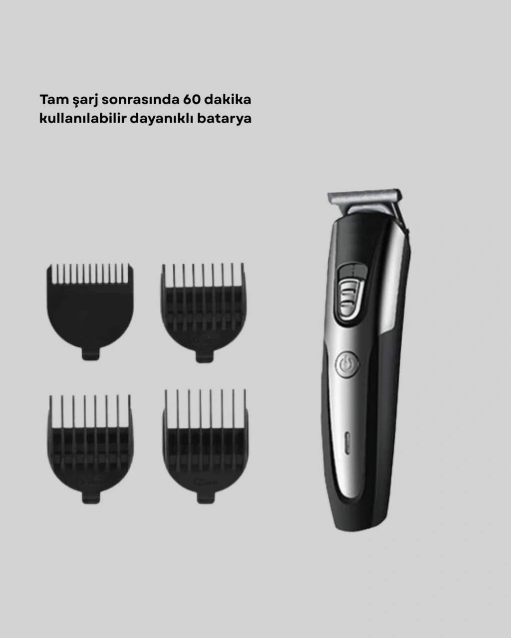 Profesyonel saç ve sakal kesme tıraş makinesi, hem kuaförlerin hem de ev kullanıcılarının beklentilerini karşılamak için tasarlanmış yüksek performanslı bir bakım cihazıdır. Güçlü motor sistemi sayesinde saç ve sakalı tek hamlede düzgünce alır, kesim sırasında takılma veya zorlanma oluşturmaz. Sessiz çalışma teknolojisi ile rahatsız edici titreşimleri minimize ederek konforlu kullanım sunar.Ergonomik gövdesi elin doğal kavrayışına uyum sağlar, kaymaz yapısı kesim sırasında kontrolü artırır. Kablosuz kullanım özelliği sayesinde hareket özgürlüğü sunar ve kabloya bağımlı olmadan her açıda zahmetsiz tıraş imkânı sağlar. Tam şarj edildiğinde 30–60 dakika arasında kesintisiz çalışma performansı sunar.Cihaz, farklı saç ve sakal uzunlukları için özel olarak hazırlanmış 3 mm, 6 mm, 9 mm ve 12 mm taraklarıyla birlikte gelir. Bu taraklar, istenilen uzunlukta düzenli ve eşit kesim yapmayı sağlar. Tıraş makinesinin hassas kesim özelliği ense, favori ve sakal çizgisi şekillendirmede mükemmel sonuç verir.Islak kullanım desteği sayesinde duştayken bile güvenli şekilde kullanılabilir. Kolay temizlenebilir yapısı hijyen açısından büyük avantaj sağlar. Otomatik kapanma fonksiyonu güvenliği üst seviyeye çıkarırken aynı zamanda enerji tasarrufu sağlar.Lazer epilasyon öncesi kısaltma işlemlerinde kullanılmak üzere ideal uzunlukta kesim sağlar ve daha pürüzsüz bir cilt yüzeyi elde etmeye yardımcı olur.Paket içeriğinde bulunan bakım yağı ve temizleme fırçası cihazın uzun ömürlü kullanımını destekler. Hem profesyoneller hem de kişisel kullanım için mükemmel bir tıraş çözümüdür.