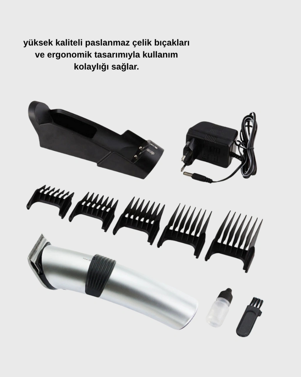 • Profesyonel Şarjlı Saç Ve Sakal Kesme Makinesi – Paslanmaz Çelik Bıçaklı, Ergonomik Ve Sessiz Motorlu