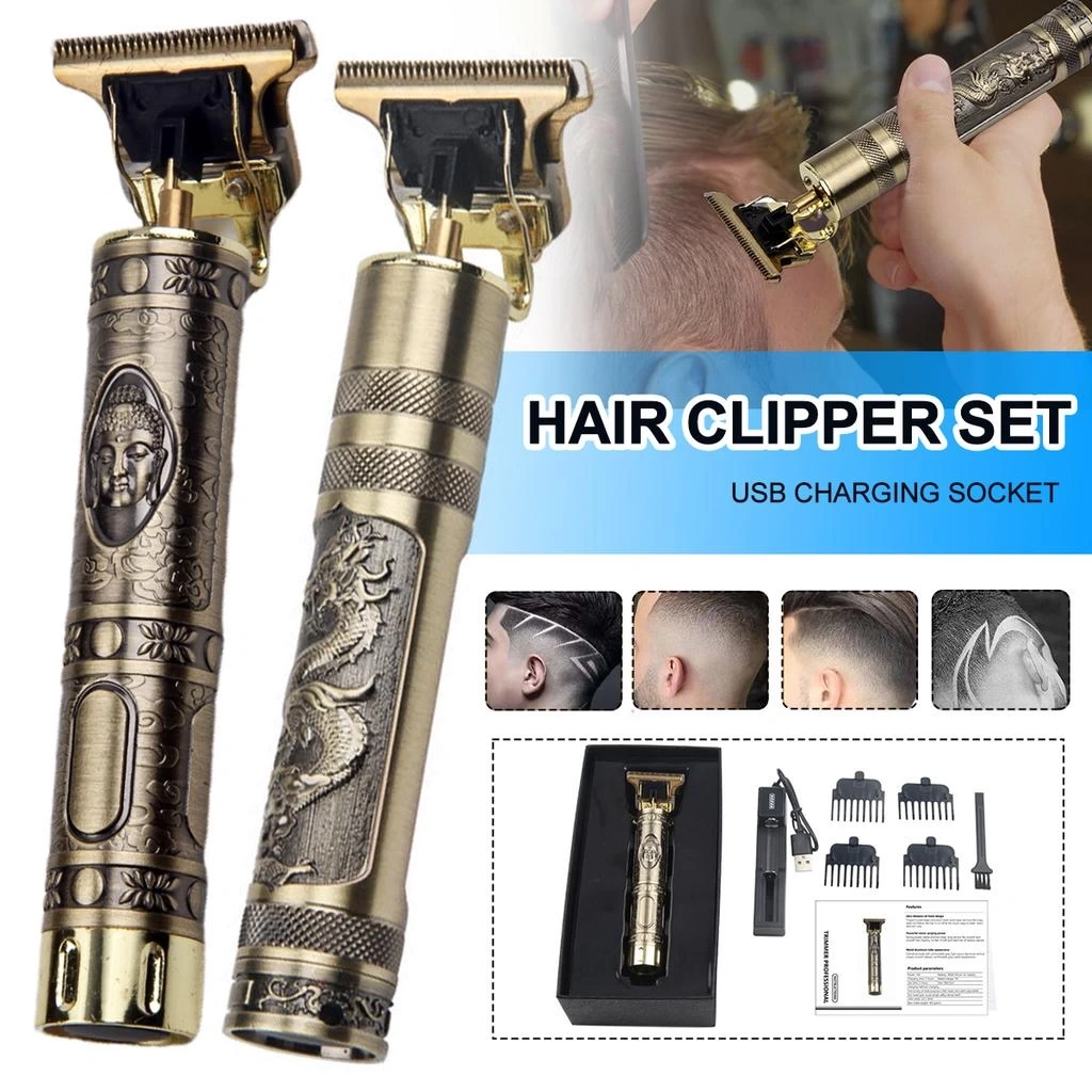 Vintage Görünümlü Güçlü 4 Farklı Başlıklı USB ŞarjlI Manuel Tıraş Makinası (4887)