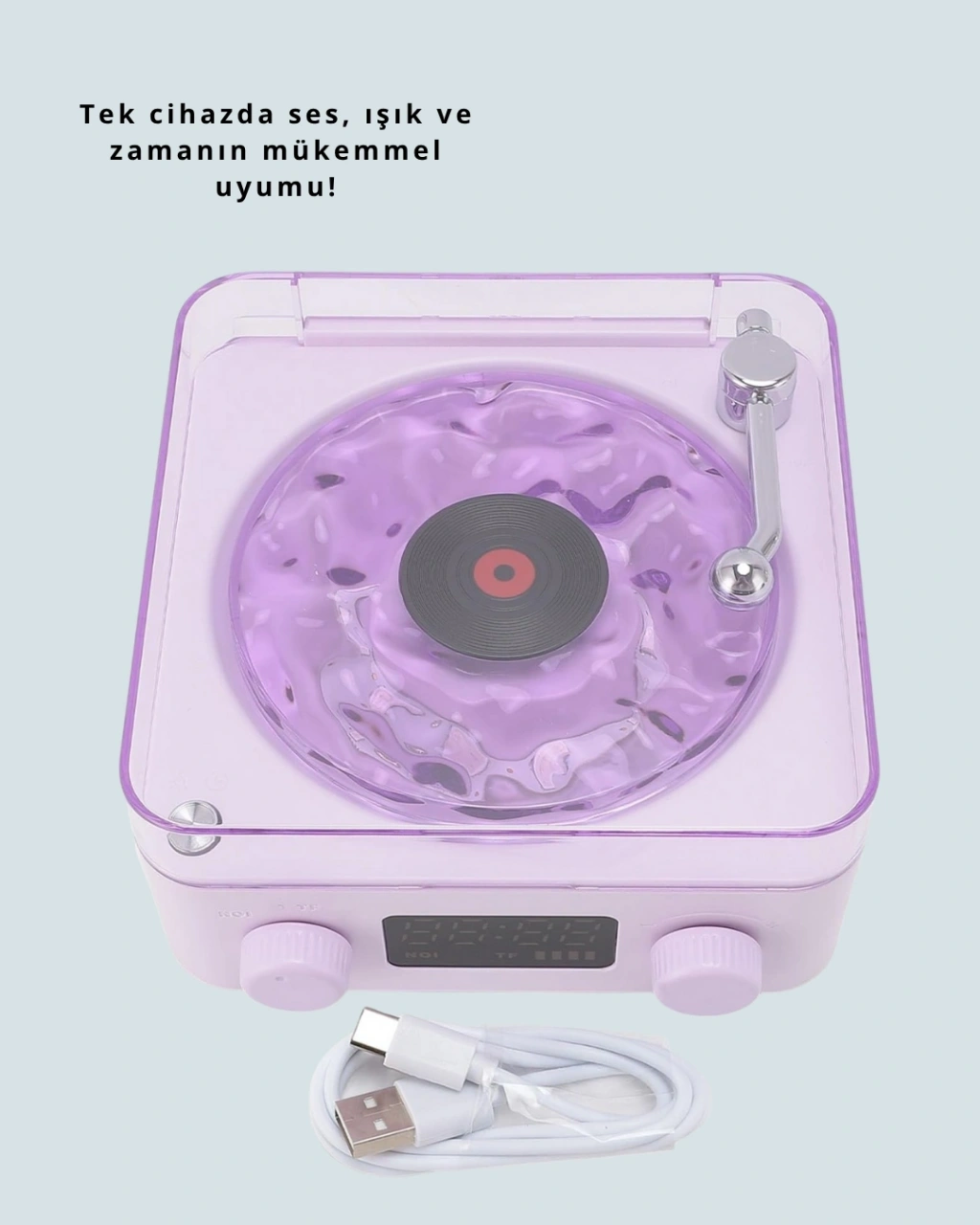 Geçmişin nostaljisini günümüz teknolojisiyle birleştiren bu retro pikap hoparlör, müzik tutkunlarının vazgeçilmezi olacak. Bluetooth, AUX, USB, Type-C ve hafıza kartı girişleriyle her cihazla uyumlu çalışır. 360° ses efektiyle odanın her köşesine güçlü ve net bir ses yayar. Dahili projektör özelliğiyle duvarlara büyüleyici ışıklar yansıtırken, gece lambası modu ile huzurlu bir atmosfer oluşturur. Üç farklı renk seçeneği sayesinde ortamın ambiyansını dilediğiniz gibi ayarlayabilirsiniz. Şarjlı ve taşınabilir yapısıyla ister evde, ister dışarıda keyifle kullanın.