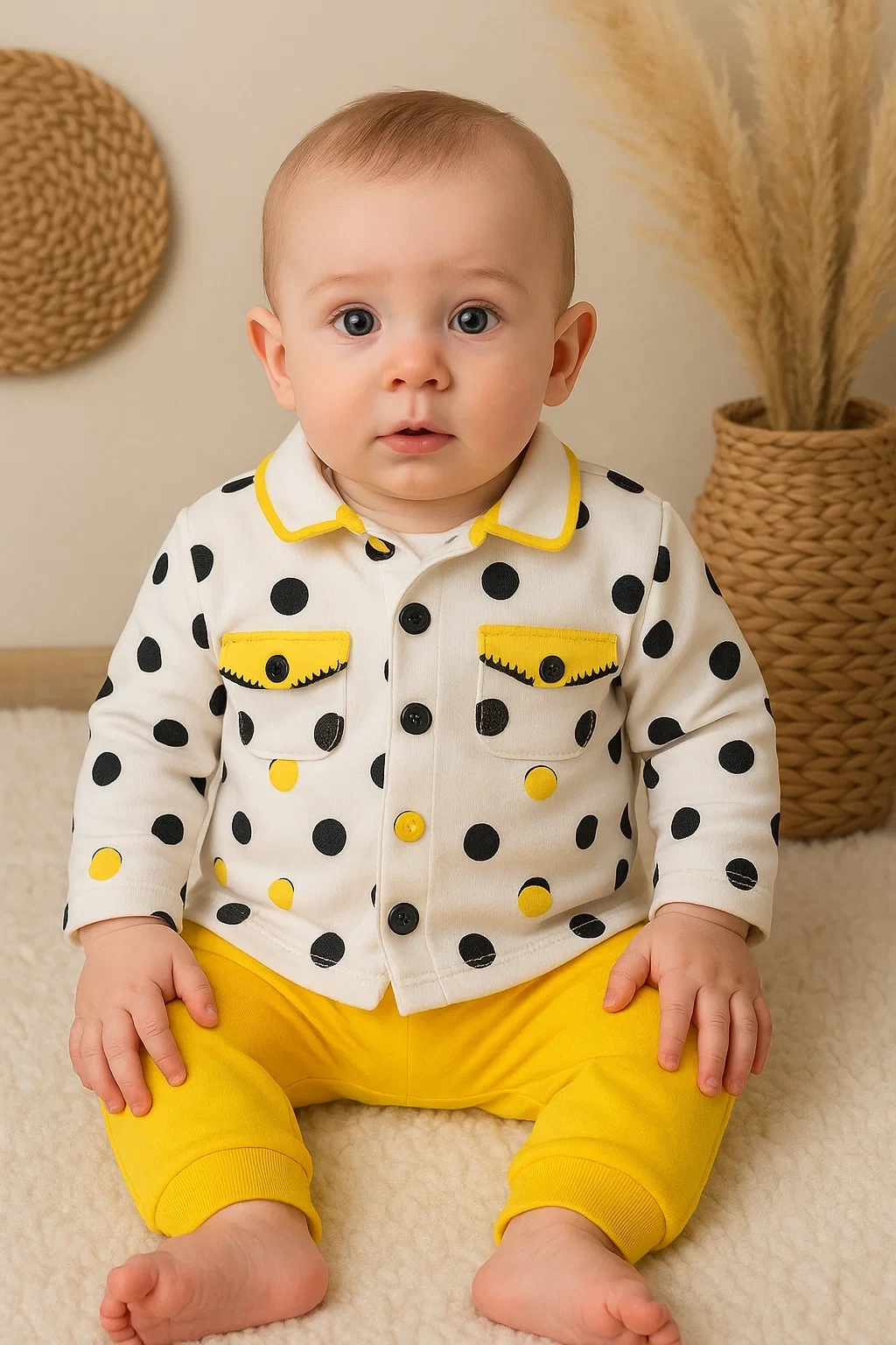 Puan Desenli Kapişonlu % 100 Pamuk 3'lü Kız Bebek Takım