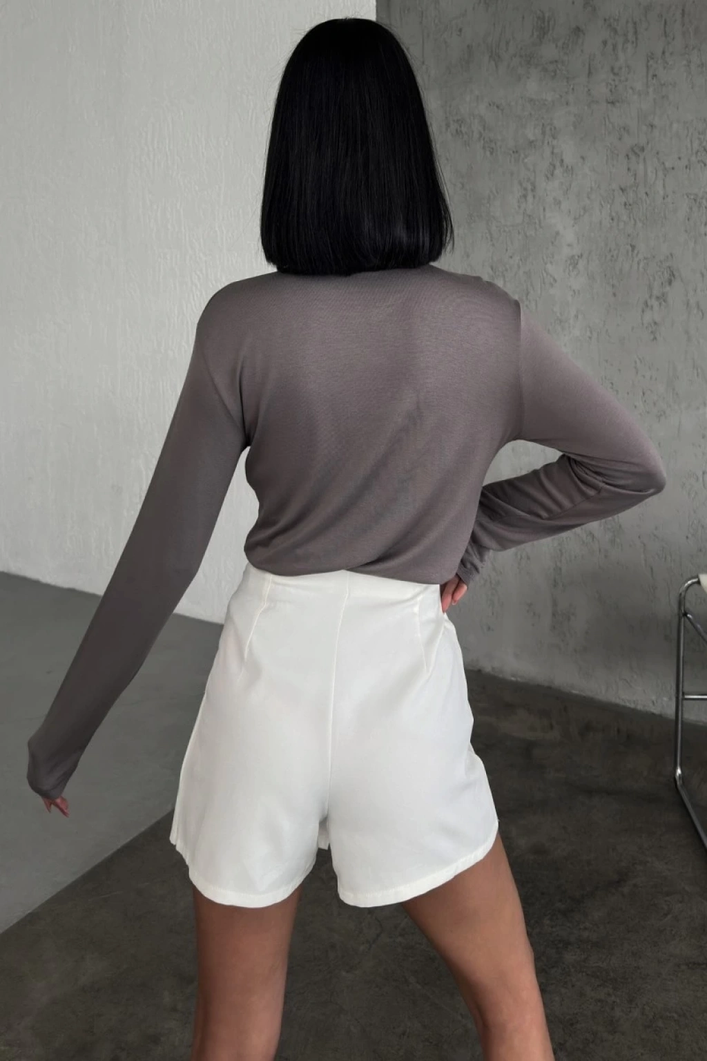-Öncelikle, bu body'nin füme rengi her türlü kombinasyonla mükemmel uyum sağlar. Fümenin zamansız şıklığı ile her mevsim ve her durumda tarzınızı yansıtabilirsiniz. Uzun kollu tasarımı, serin havalarda sizi sıcak tutarken, bisiklet yaka detayı da hafif bir zarafet katarak görünümünüzü tamamlar.