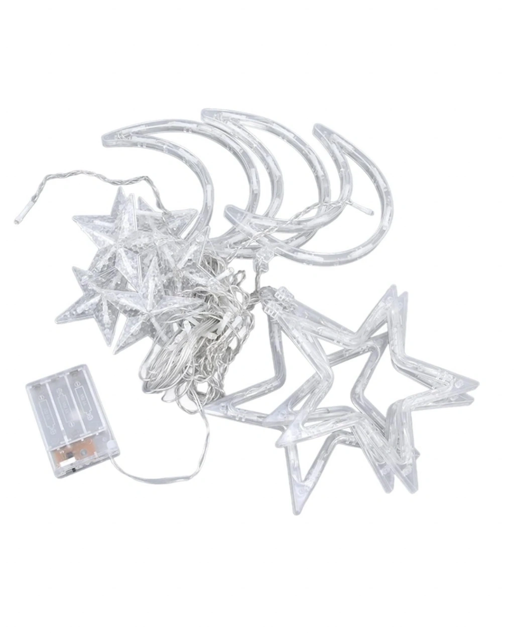 Ramazan süslemeleri için özel olarak tercih edilen bu dekoratif LED perde ışık, ay ve yıldız figürleriyle es bir görünüm sunar. Güvenli LED yapısı sayesinde uzun süreli kullanımlarda ısınma yapmaz. Salon, çocuk odası, yatak odası veya vitrin dekorasyonlarında kullanılabilir. Düğün, nişan, doğum günü ve özel davetlerde de ortam aydınlatması olarak tercih edilebilir.