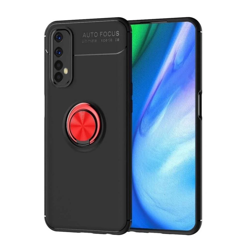 Realme 7 Kılıf Range Yüzüklü Silikon - Siyah-Kırmızı