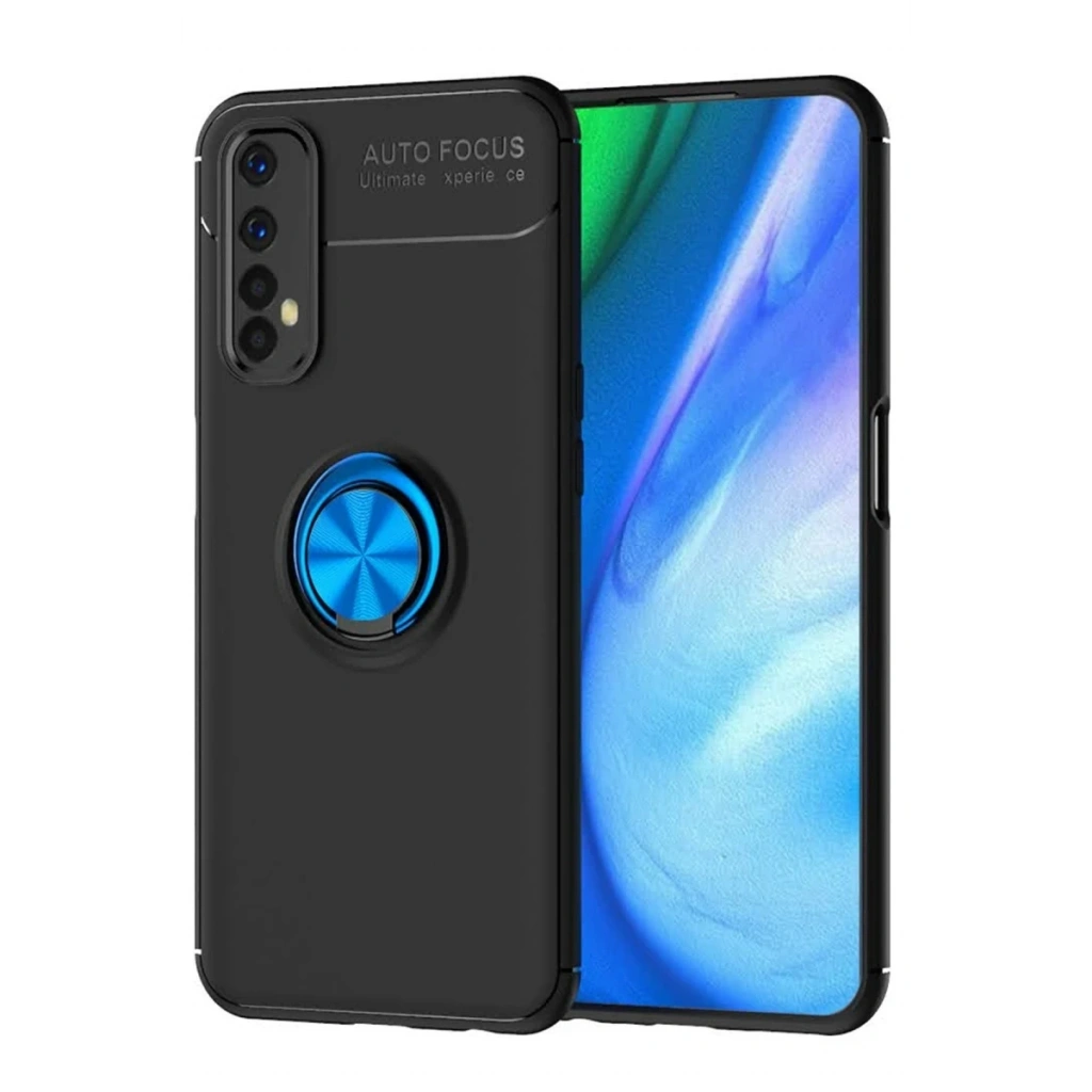Realme 7 Kılıf Range Yüzüklü Silikon - Siyah-Mavi