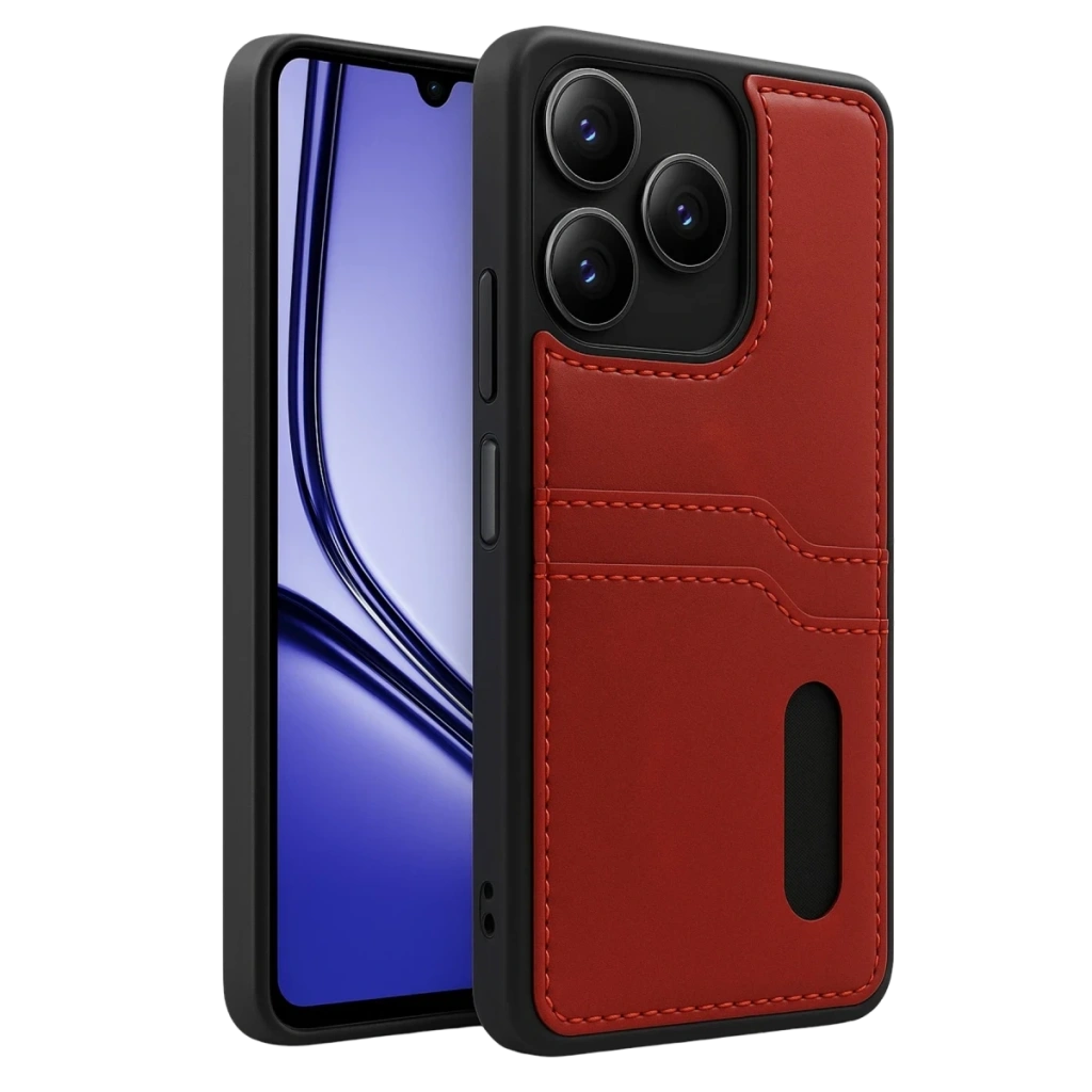 Realme Note 50 4G Kılıf Sara Kartvizitli Deri Kılıf - Kırmızı