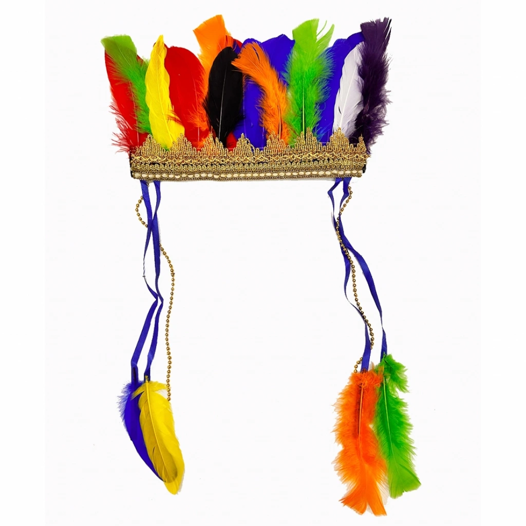 Rengarenk Tüylerle İşlenmiş Lastikli Kızılderili Başlığı