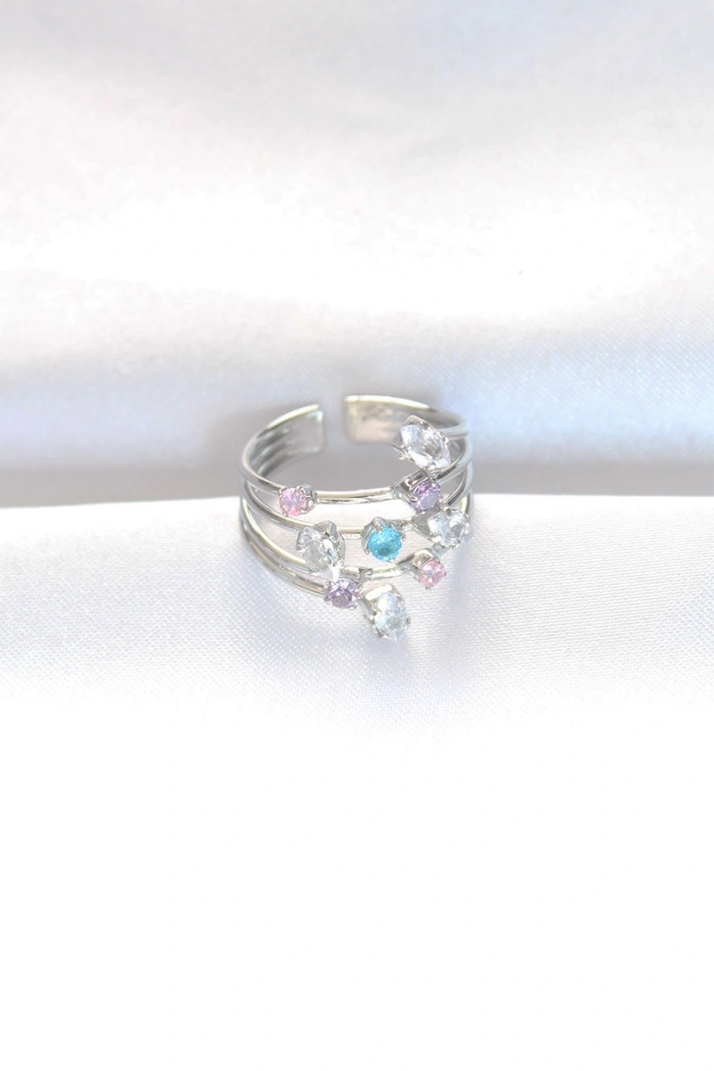 Renkli Zirkon Taşlı Silver Renk Ayarlanabilir Yüzük - TJ-BYK3127