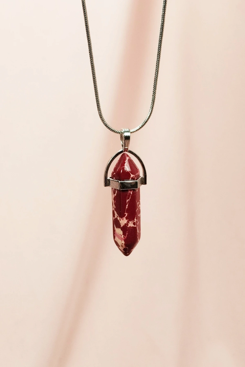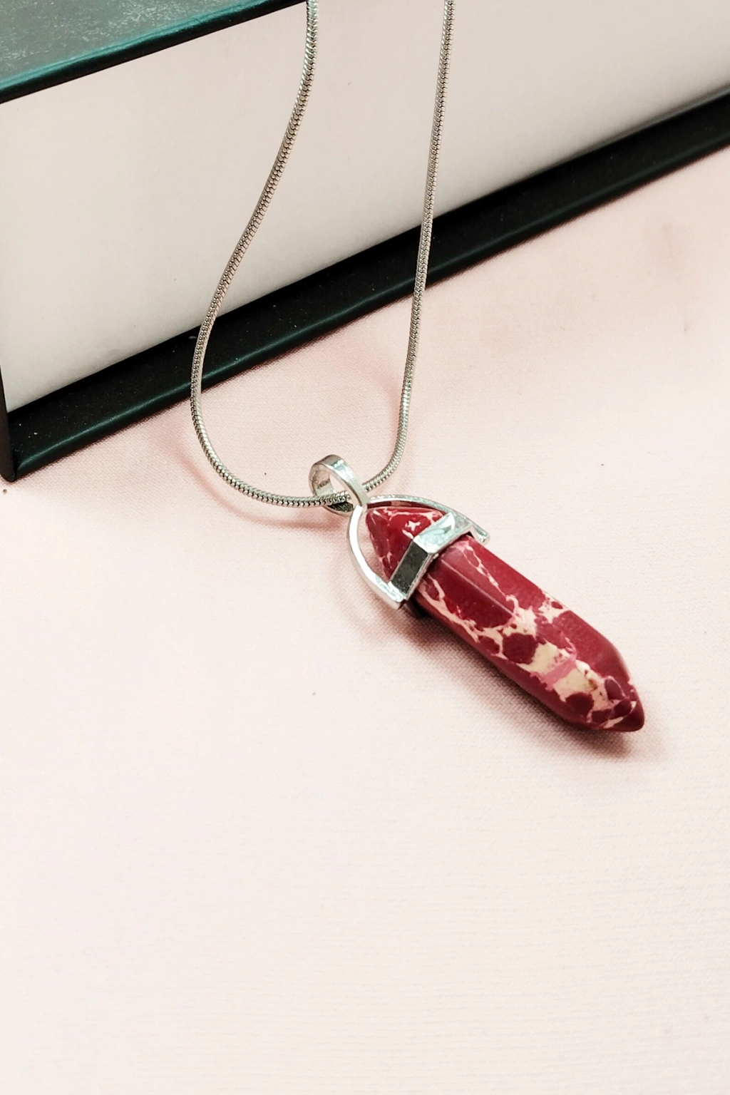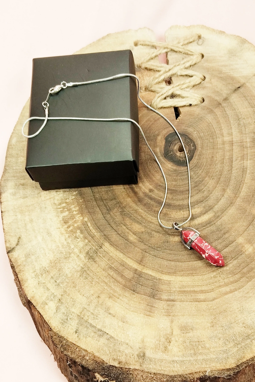 Rodokrozit Doğal Taşı Zincirli El Yapımı Tasarımlı Kolye Uç: 3,5 cm Zincir: 20 cm Kutulu