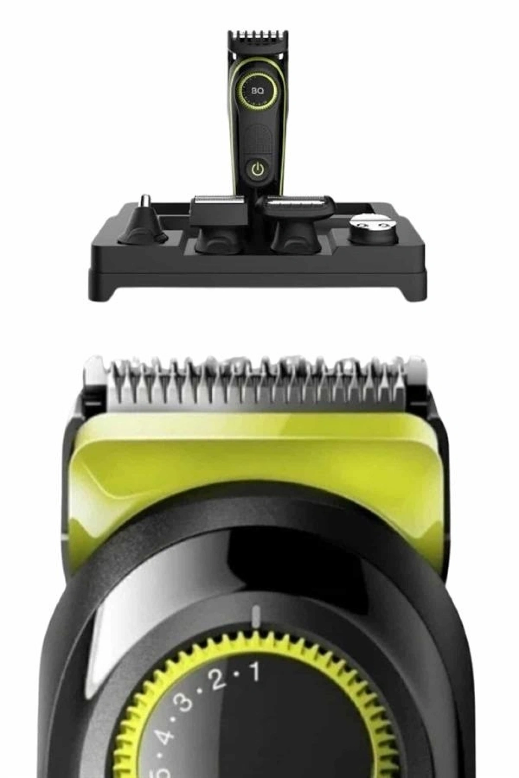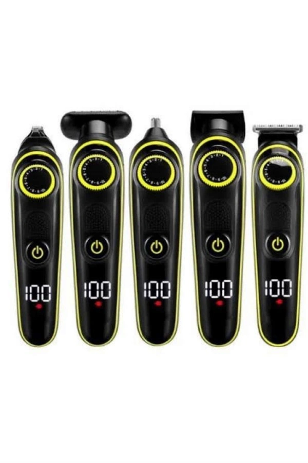 Bu 5'i 1 arada çok fonksiyonlu bakım seti, kişisel bakım rutininizi daha pratik ve etkili hale getiriyor. Saç kesimi, sakal tıraşı, burun ve kulak kılı temizliği, detaylı şekillendirme ve vücut tıraşı gibi birden fazla işlevi tek cihazda sunarak, tam kapsamlı bakım imkanı sağlıyor. Güçlü motoru ve paslanmaz çelik bıçakları ile pürüzsüz bir tıraş deneyimi sunarken, uzun ömürlü ve keskin yapısı sayesinde her kullanımda yüksek performans elde edebilirsiniz. Kablosuz ve şarjlı kullanımı sayesinde hareket özgürlüğü tanır; tam dolu batarya ile uzun süreli kullanım imkanı sunar. Farklı kesim uzunlukları için ayarlanabilir tarak başlıkları mevcuttur; bu sayede kişisel stilinize uygun şekillendirmeyi zahmetsizce gerçekleştirebilirsiniz. Ergonomik tutuşa sahip şık ve modern tasarımı, hem kullanım kolaylığı sağlar hem de banyo alanınıza es bir katkı sunar. Üzerindeki LED gösterge, pil seviyesini anlık olarak takip etmenize olanak tanırken, düşük sesli çalışması ile her ortamda konforlu bir kullanım deneyimi yaşatır. Suya dayanıklı başlıkları ve çıkarılabilir bıçakları sayesinde temizlik işlemleri oldukça kolaydır; hijyenik kullanım için yalnızca düzenli olarak yıkamanız yeterlidir.