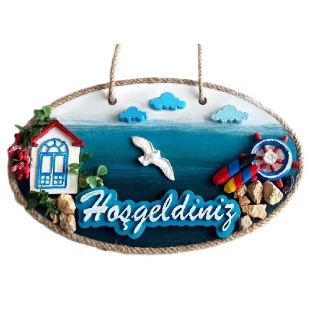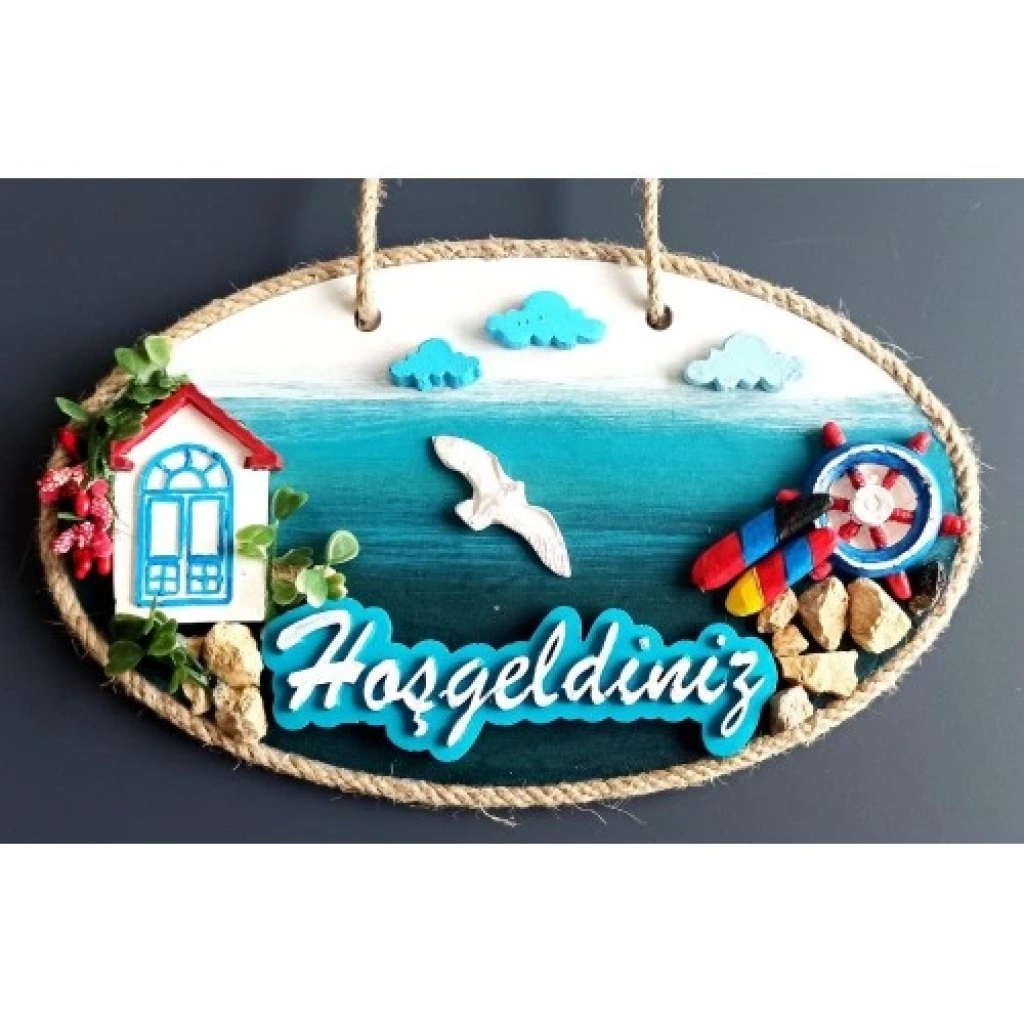 Sahil Kasabası Hoşgeldiniz Yazılı El Yapımı Kapı Süsü