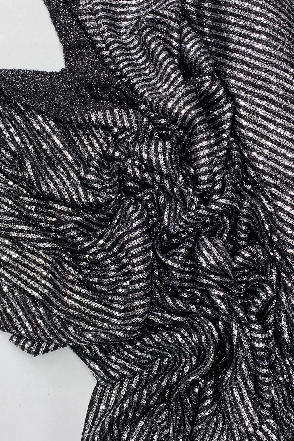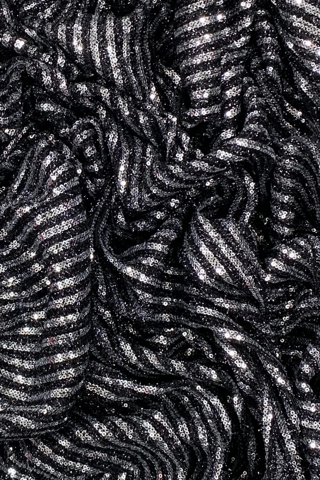 Sakallı Çizgili Pullu Kumaş Pullu Payet Kumaş Abiye Nişan Düğün Siyah