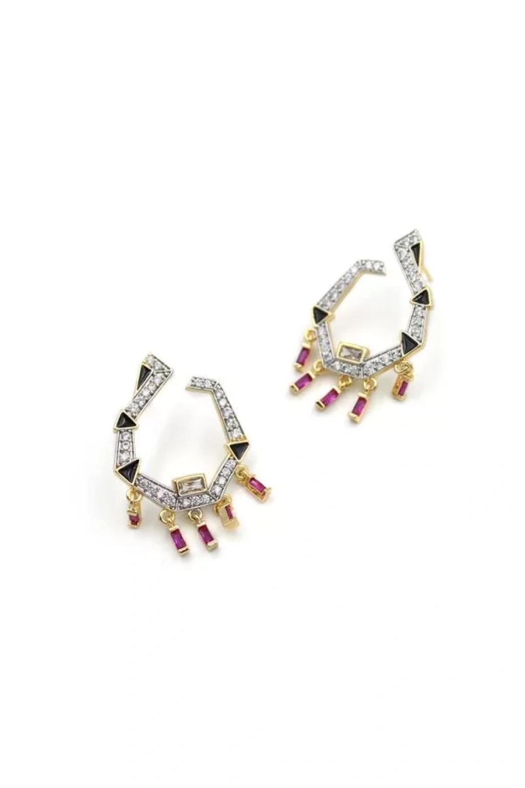 Sallantılı Taşlı Küpe - Kırmızı