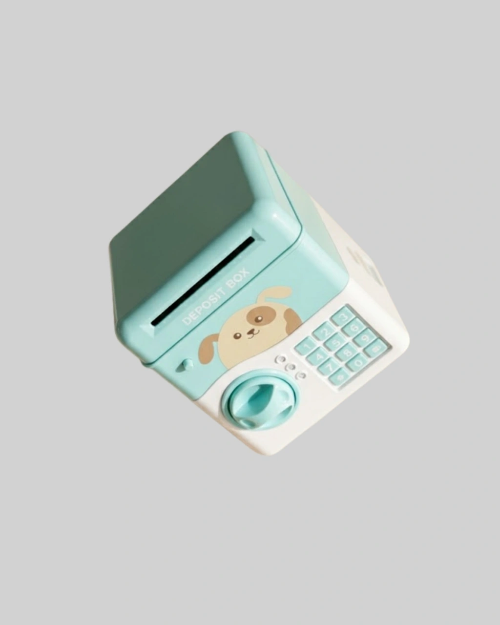 Bu su yeşili ATM kasa tasarımlı elektronik kumbara, hem eğitici hem de dekoratif bir üründür. Kişisel şifre sistemi ile güvenli kullanım sunar.Otomatik girişi, ışık ve ses efektleriyle birleşerek çocuklar için keyifli bir deneyim oluşturur. Doğum günü, bayram ve karne hediyesi olarak mükemmel bir seçenektir.
