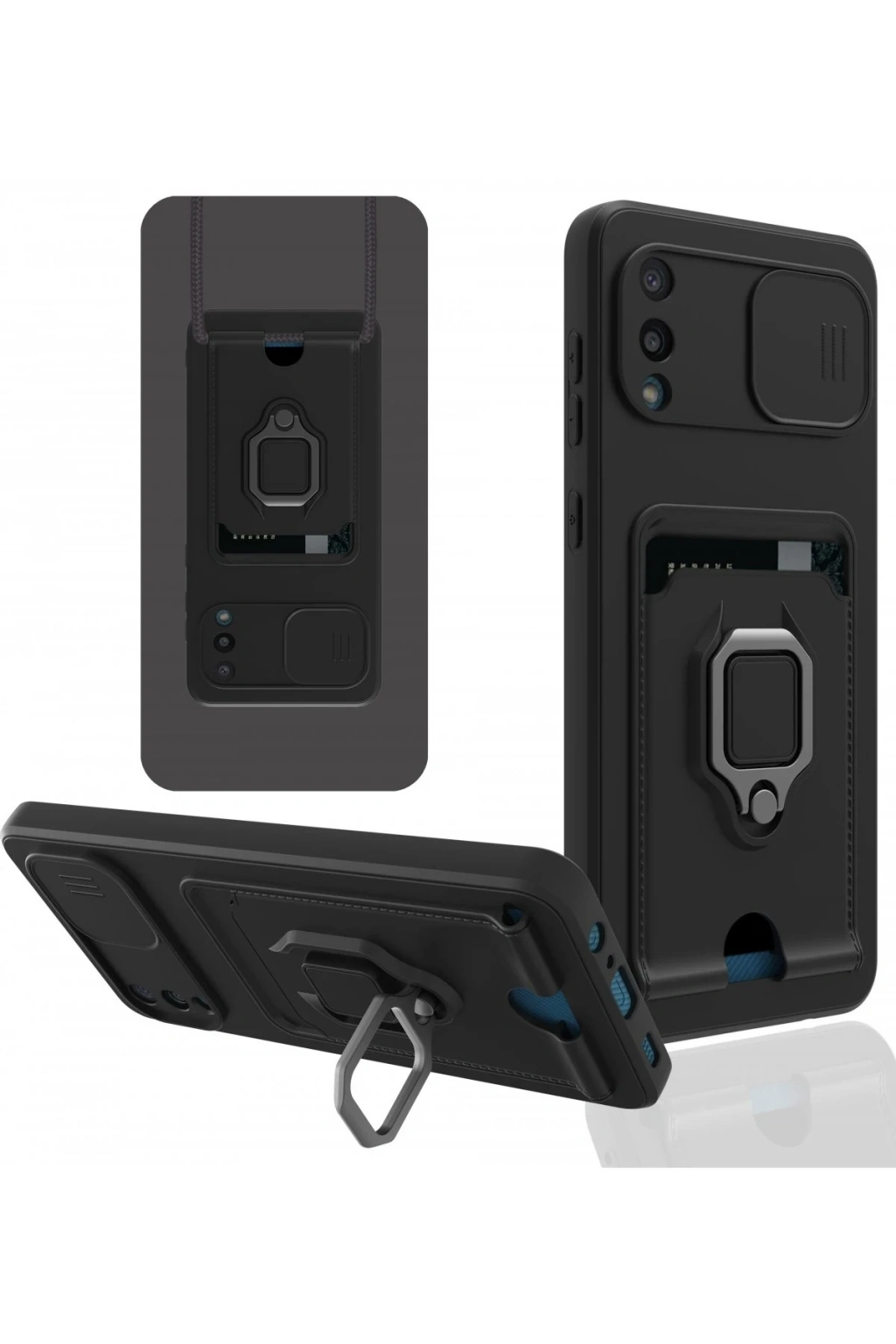 Samsung Galaxy A02 Kılıf Zuma Kartvizitli Yüzüklü Silikon - Siyah
