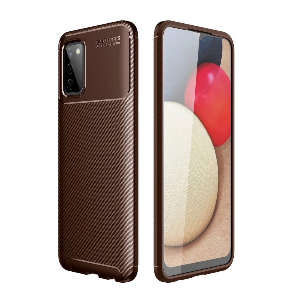 Samsung Galaxy A02S Kılıf Auto Focus Karbon Kapak - Kahverengi