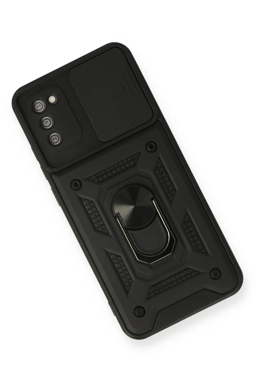 Samsung Galaxy A02S Kılıf Pars Lens Yüzüklü Silikon - Siyah