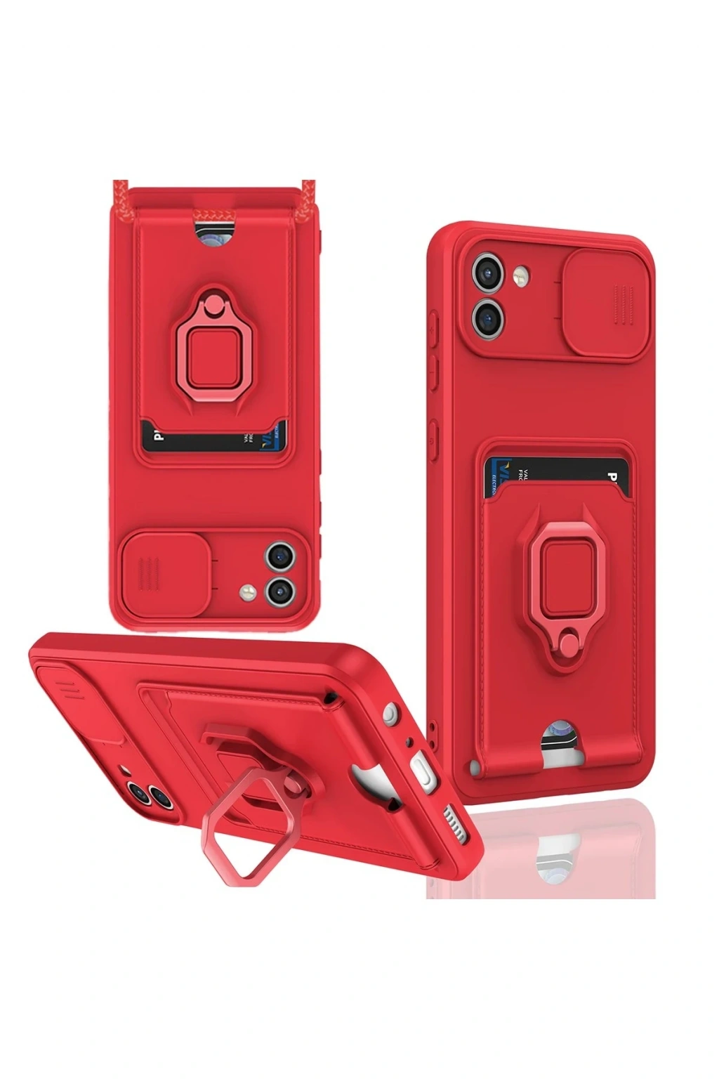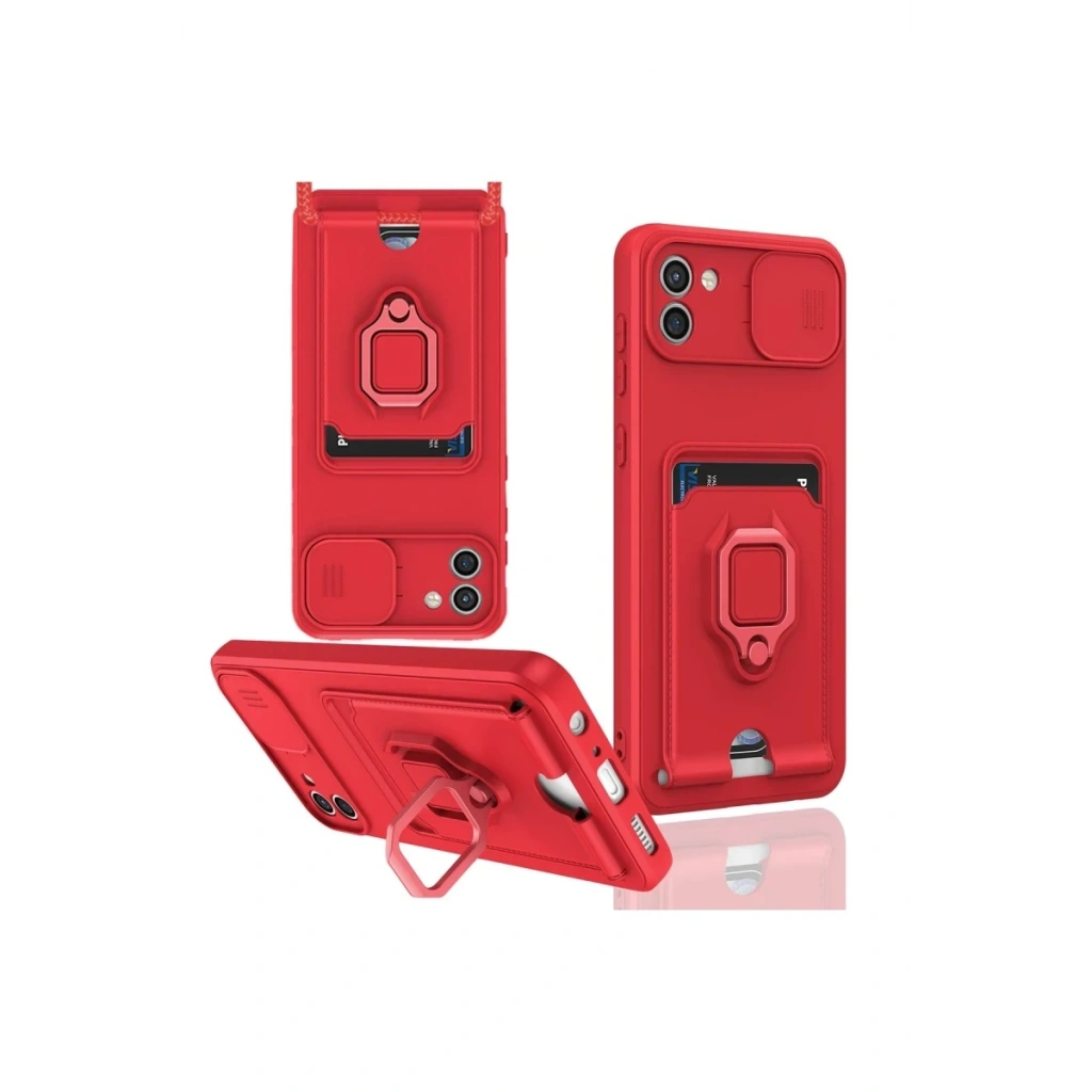 Samsung Galaxy A03 Kılıf Zuma Kartvizitli Yüzüklü Silikon - Kırmızı
