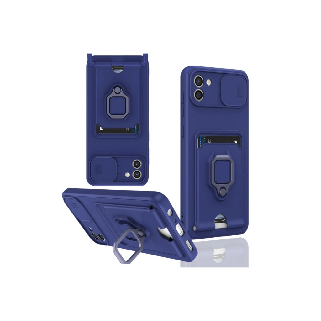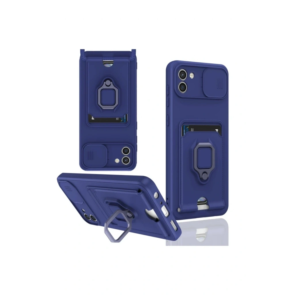 Samsung Galaxy A03 Kılıf Zuma Kartvizitli Yüzüklü Silikon - Lacivert