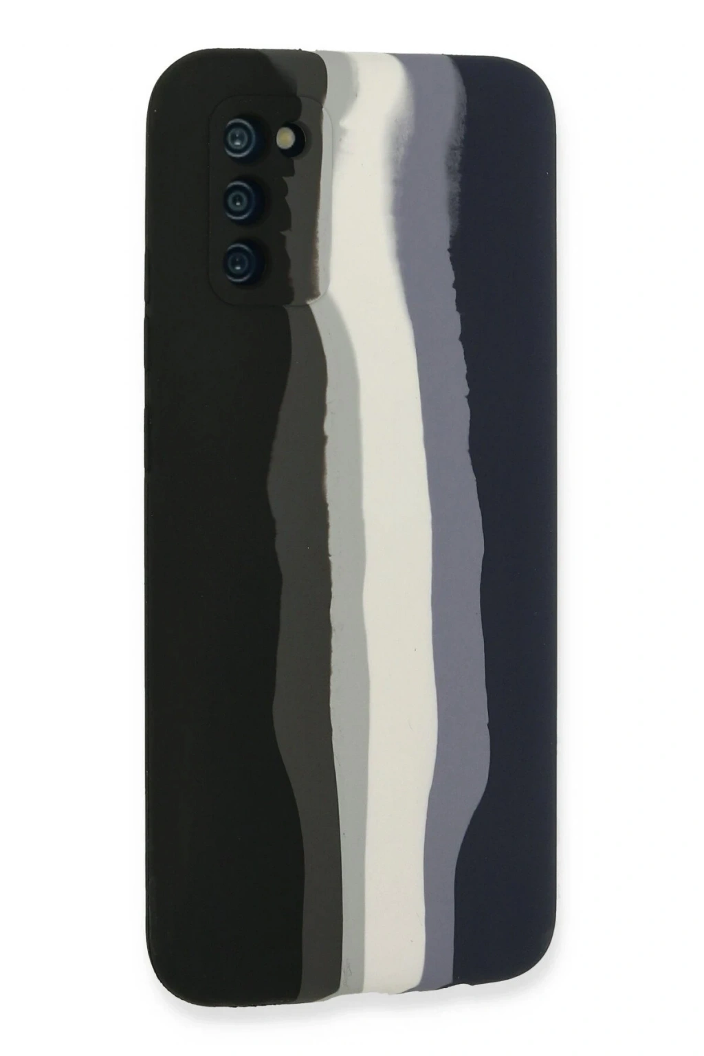 Samsung Galaxy A03S Kılıf Ebruli Lansman Silikon - Siyah-Lacivert