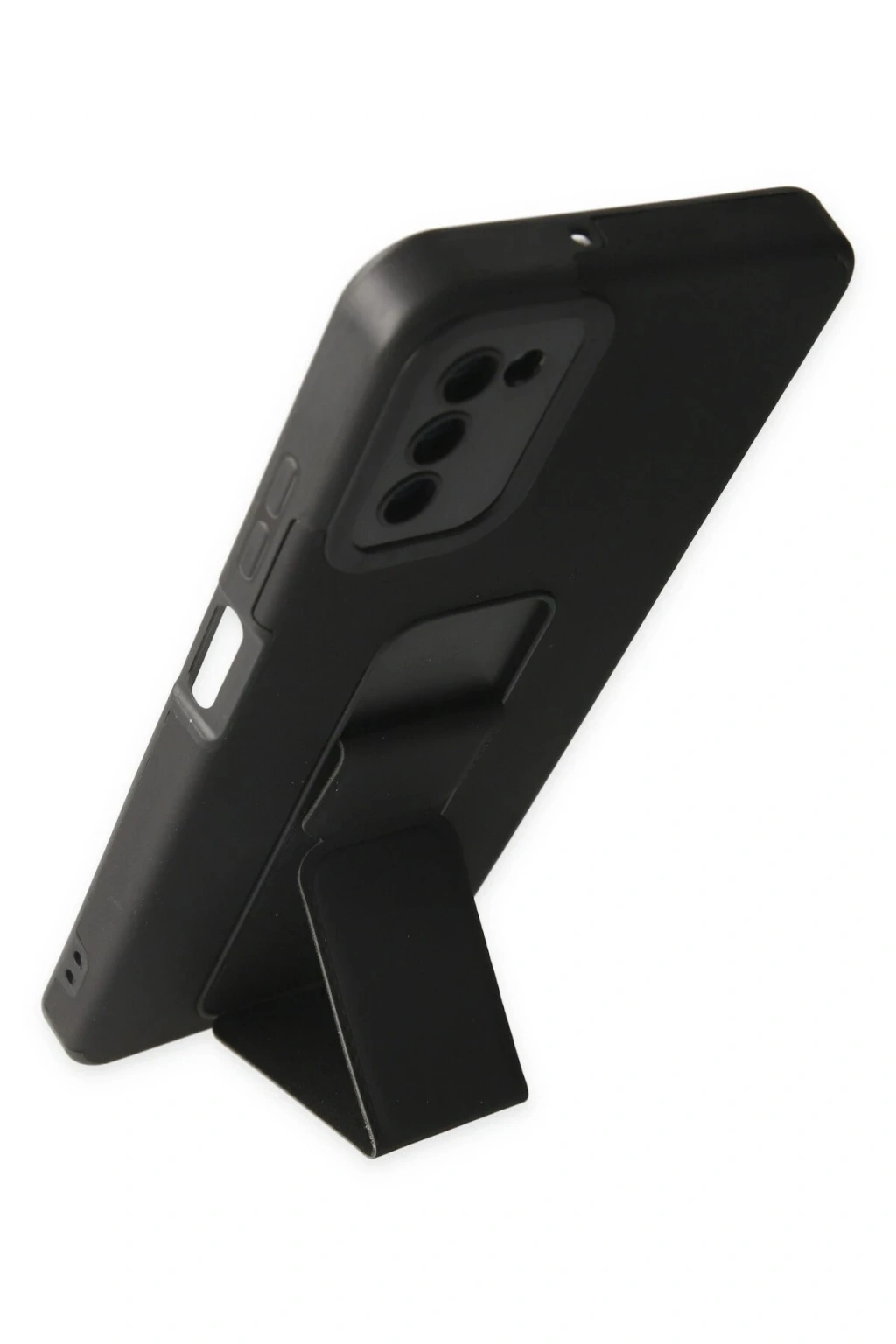 Samsung Galaxy A03S Kılıf Mega Standlı Silikon - Siyah