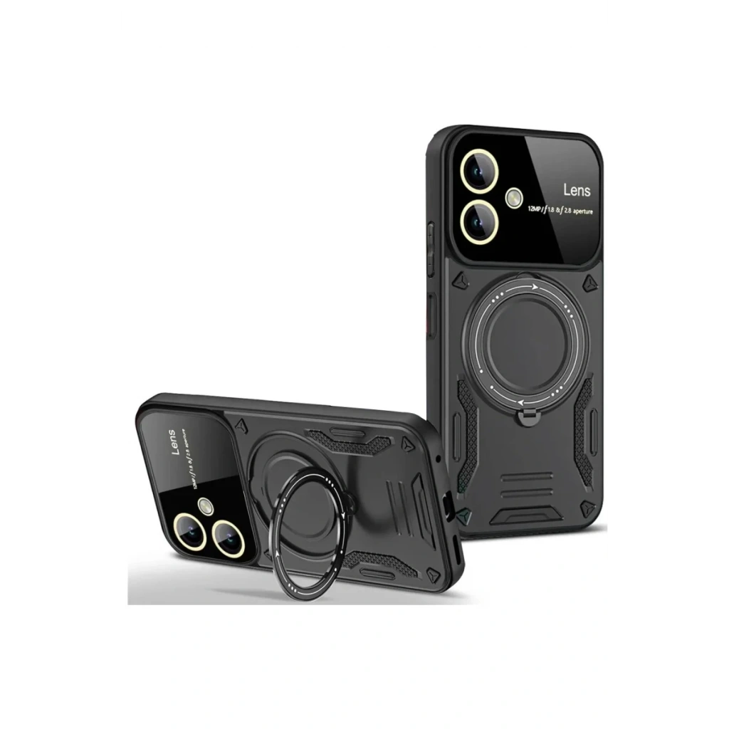 Samsung Galaxy A06 Kılıf Joy Lens Standlı Kapak - Siyah