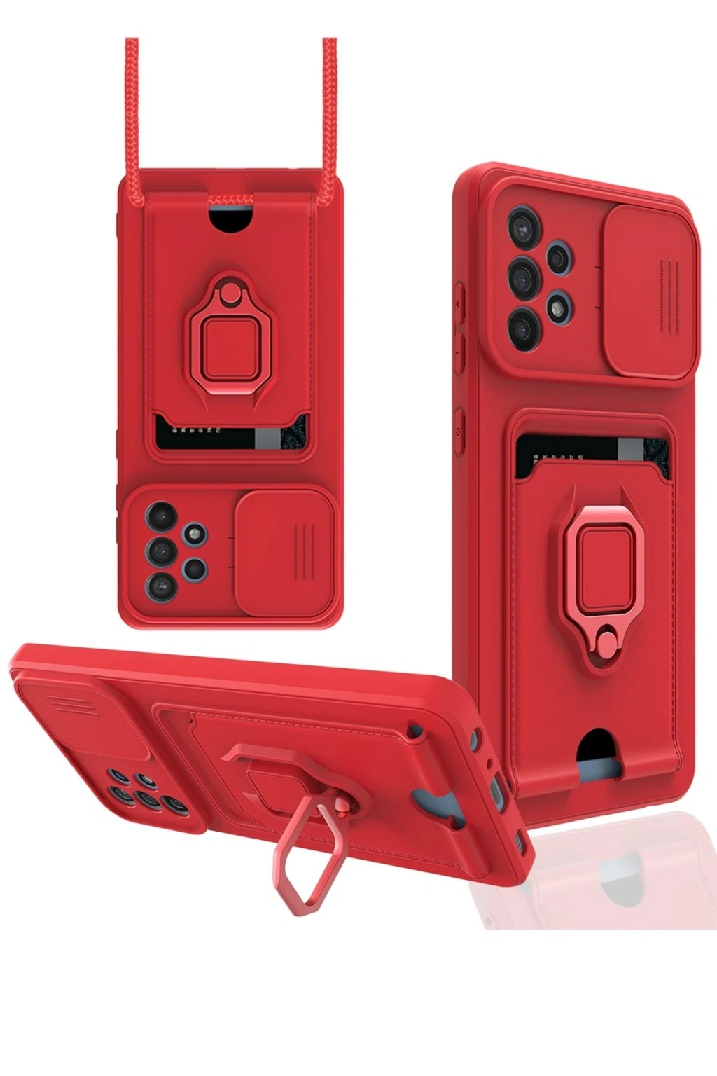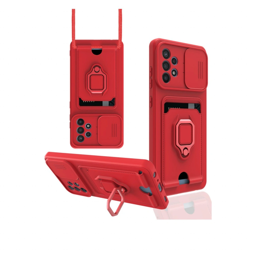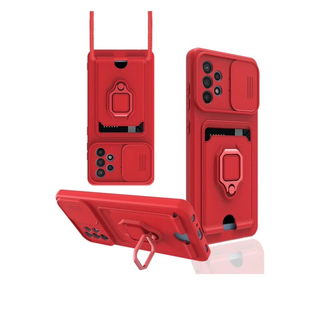 Samsung Galaxy A72 Kılıf Zuma Kartvizitli Yüzüklü Silikon - Kırmızı