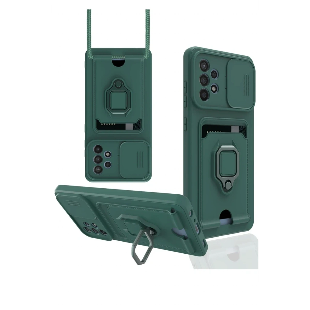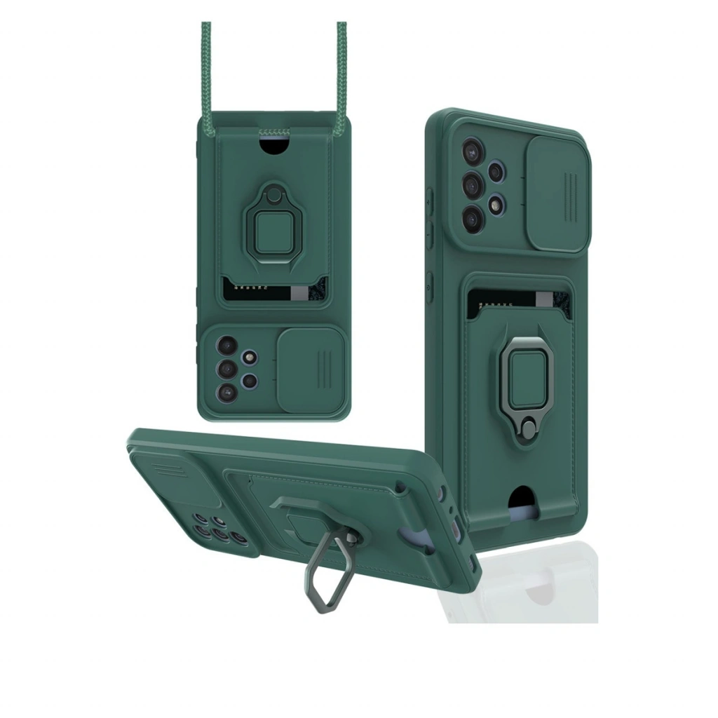 Samsung Galaxy A72 Kılıf Zuma Kartvizitli Yüzüklü Silikon - Yeşil