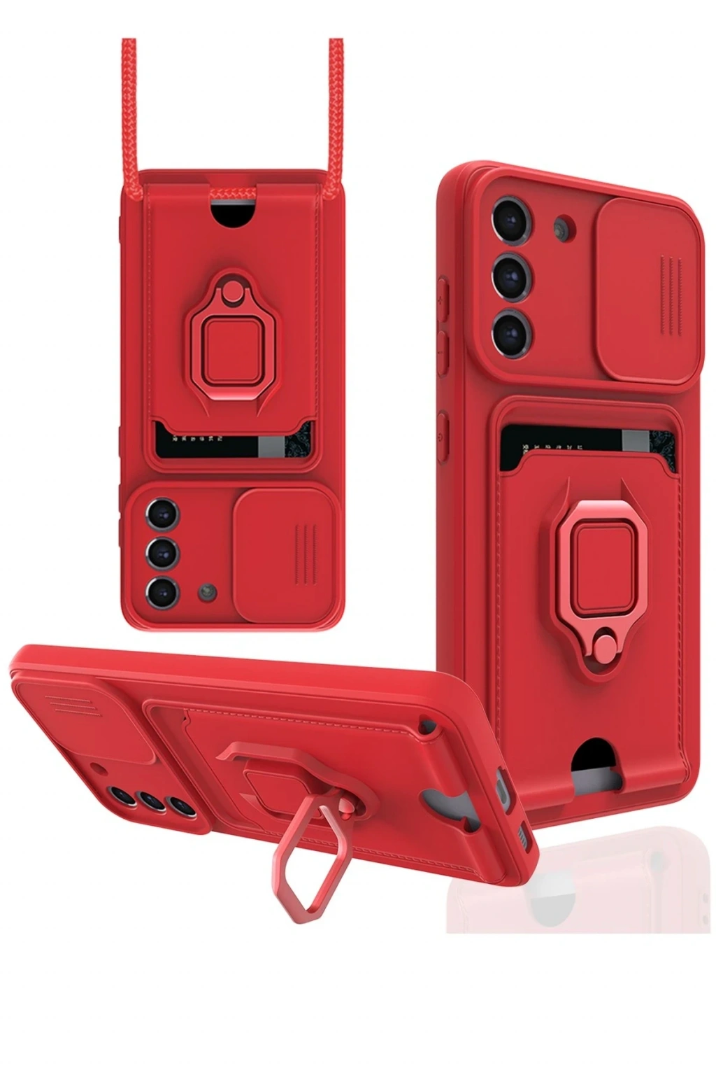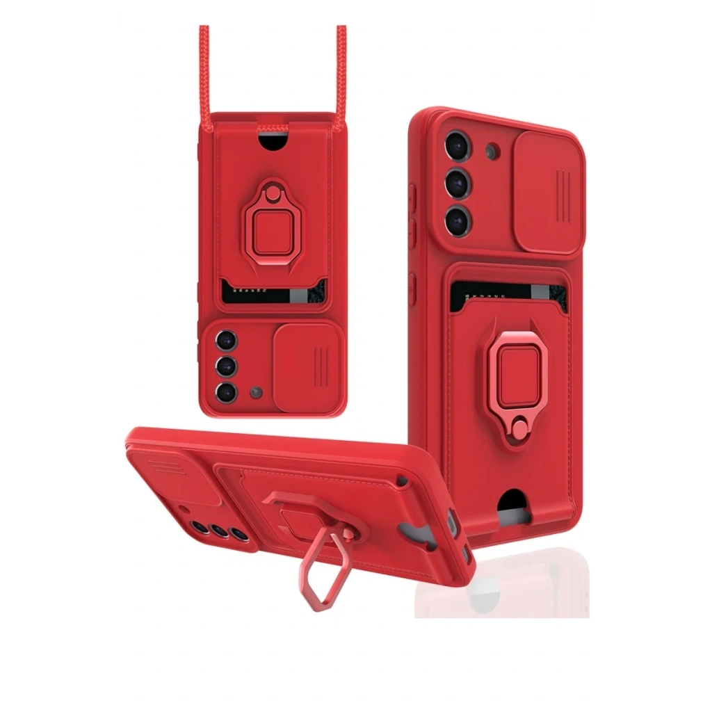 Samsung Galaxy S21 FE Kılıf Zuma Kartvizitli Yüzüklü Silikon - Kırmızı
