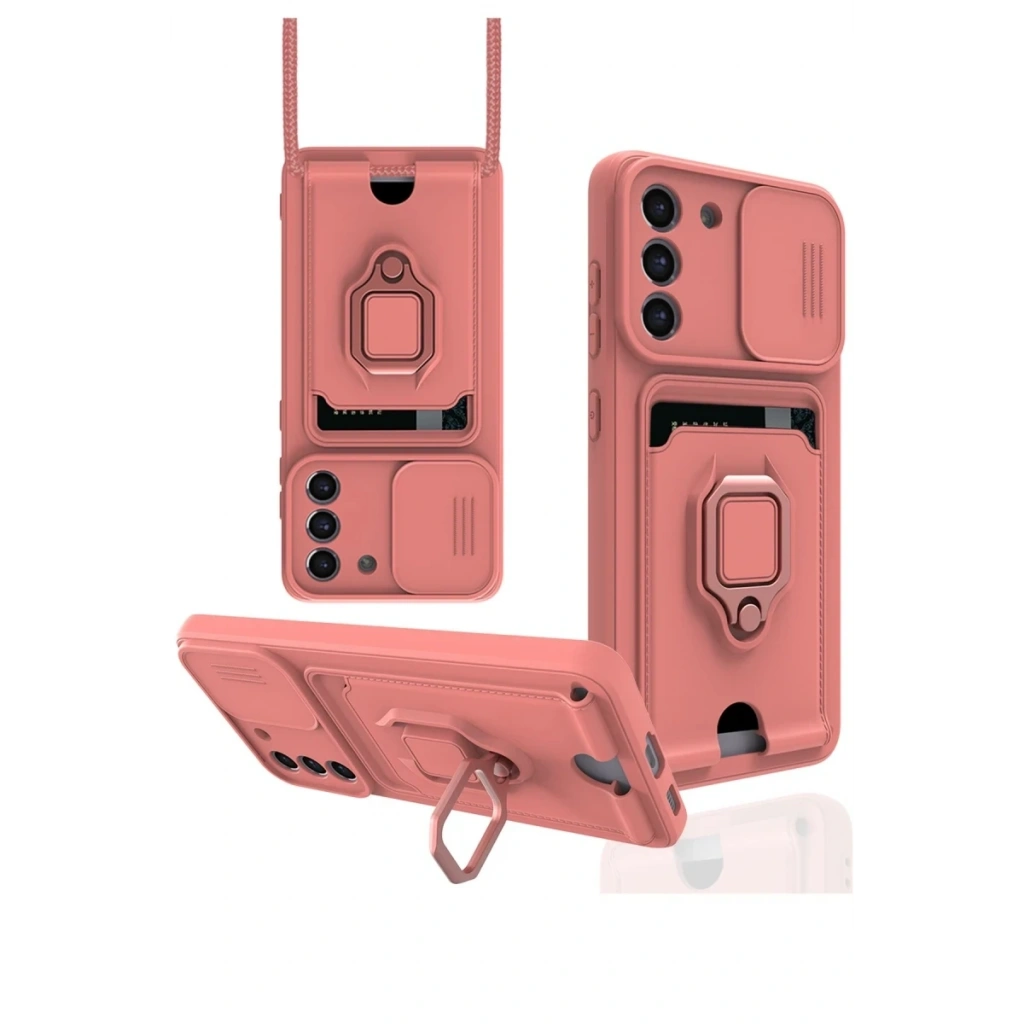 Samsung Galaxy S21 FE Kılıf Zuma Kartvizitli Yüzüklü Silikon - Pembe