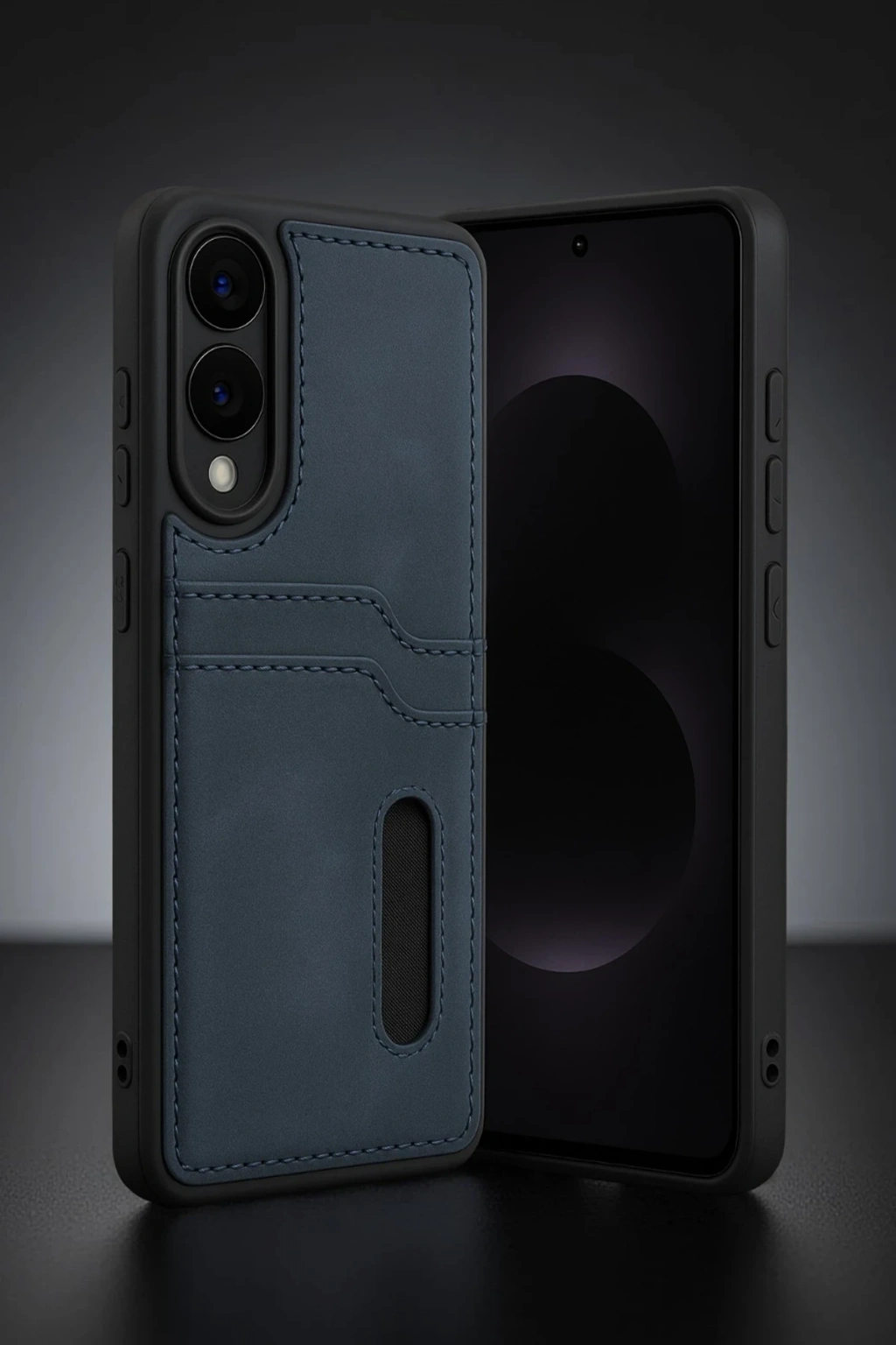 Samsung Galaxy S25 Edge Sara Kartvizitli Deri Kılıf - Lacivert
