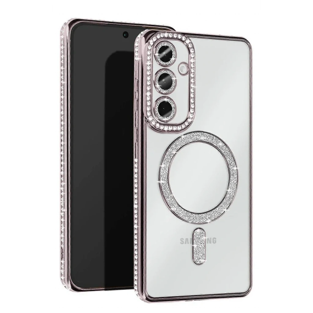 Samsung Galaxy S25 Kılıf Joke Simli Magneticsafe Kılıf - Gümüş