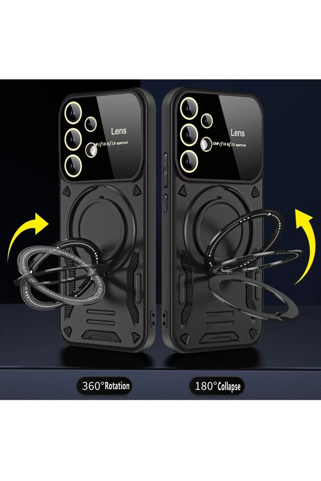 Samsung Galaxy S25 Ultra Kılıf Joy Lens Standlı Kapak - Siyah