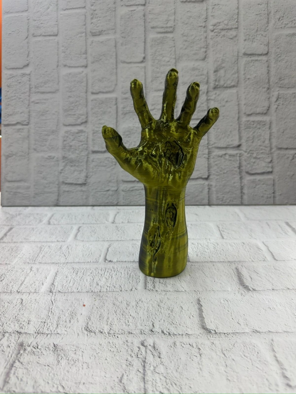 Bu fantastik tasarımlı el heykeli, 22×7 cm boyutlarıyla hem kompakt hem de etkileyici bir dekoratif figür olarak öne çıkar. Ürünün yüzeyindeki damar detayları, parmak kıvrımları ve doğal dokular, heykelin 3 boyutlu etkisini artırır. Özel renk geçişlerine sahip altın–yeşil yüzeyi, ürüne hem modern hem de mistik bir görünüm kazandırmaktadır.El figürü; şans, enerji, yeni başlangıçlar ve yaratıcı güç anlamını taşır. Bu nedenle çalışma masasına, ofis köşesine veya kitaplık rafına yerleştirildiğinde güçlü bir sembolik etki oluşturur. Ürün özellikle fantastik dekor, gotik tarz, modern minimalizm veya konsept tasarım sevenler için ideal bir objedir.Dayanıklı yapısı, uzun süre şekil değiştirmeden kullanılmasına olanak sağlar. Gösterişli görünümü sayesinde hem erkek hem kadın dekor tutkunlarına hediye olarak tercih edilebilir. Koleksiyoncular, sanat severler, fantastik film ve oyun temalı dekorasyon yapanlar için eşsiz bir tamamlayıcı parçadır.