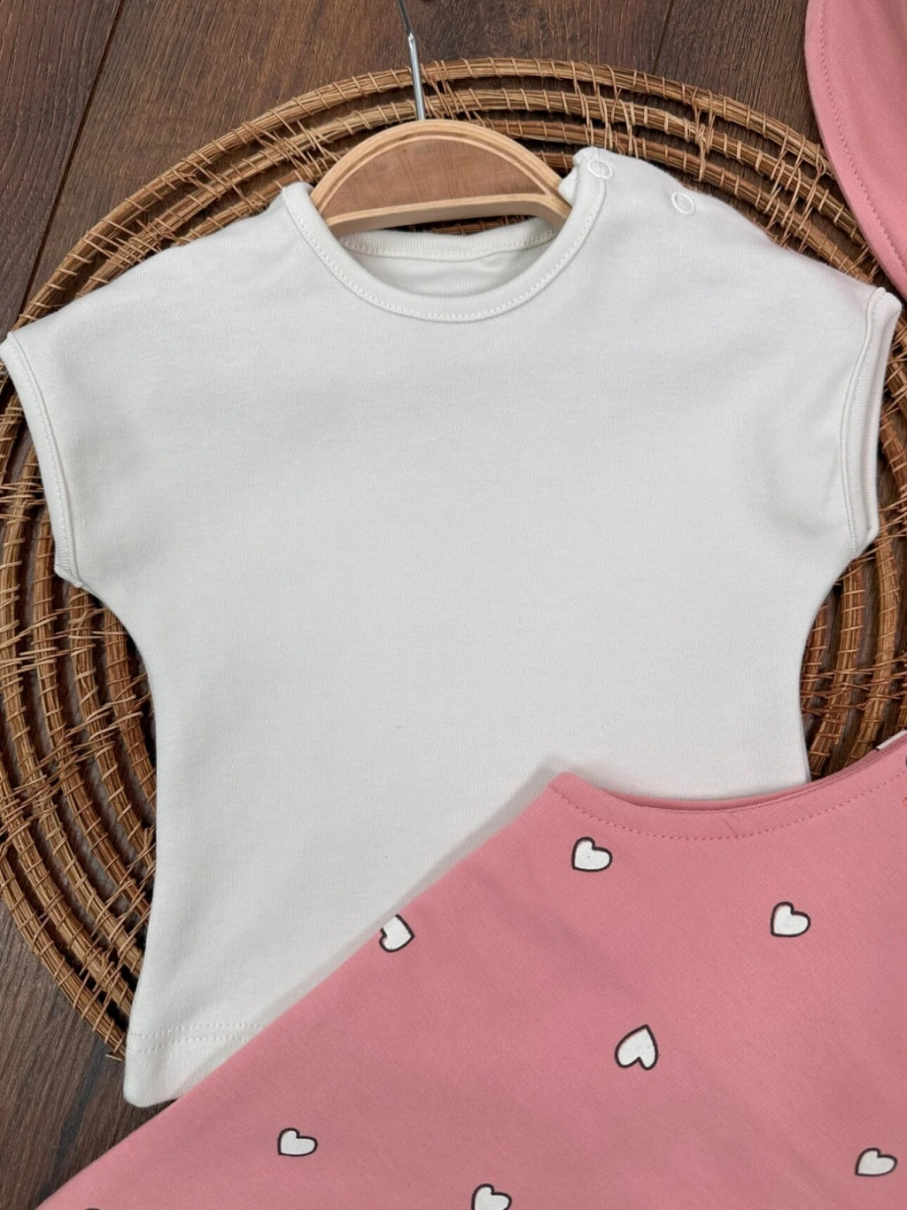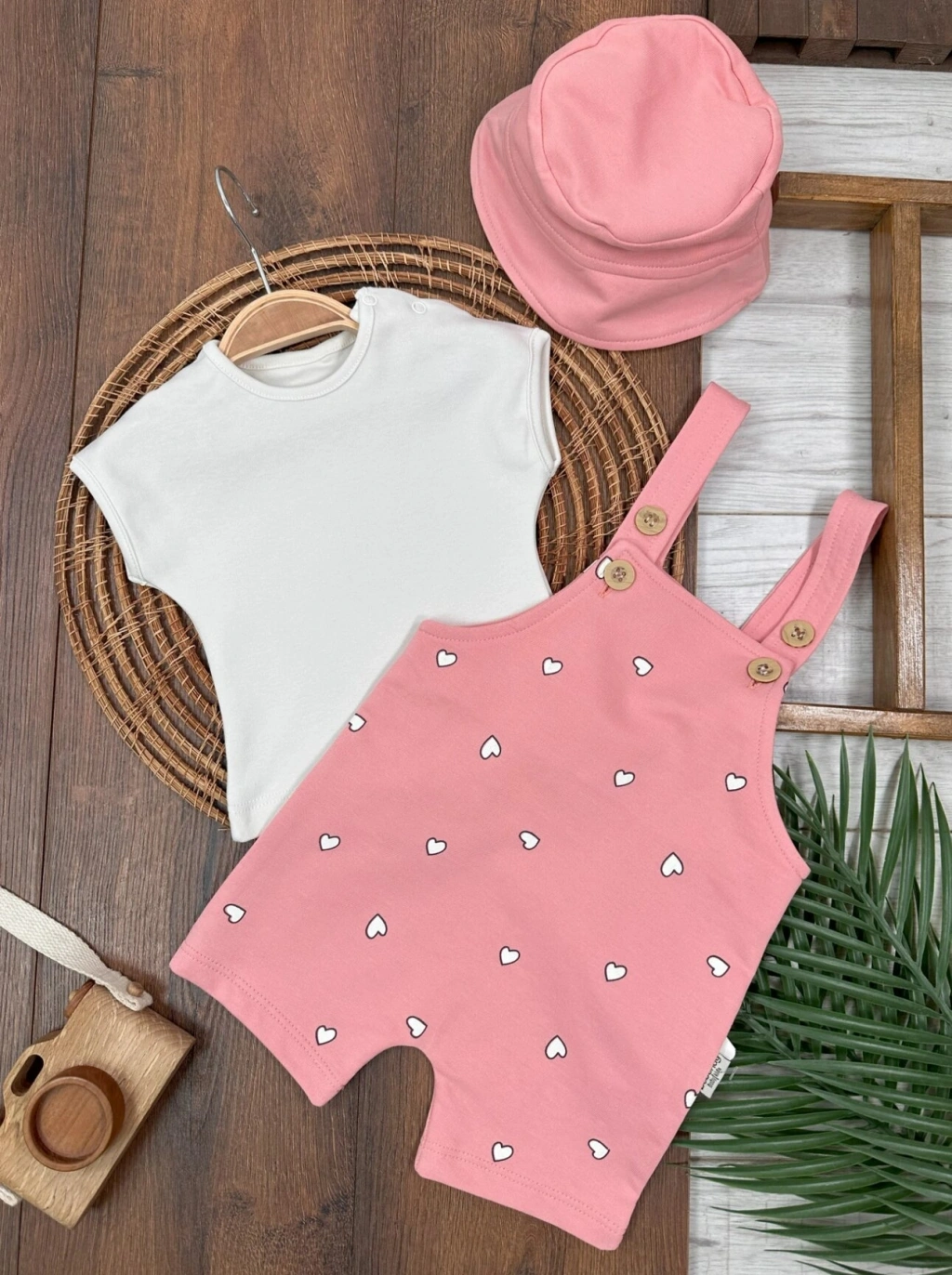 ACIK KAHVE KISA KOLLU KIZ PAMUKLU ÇOCUK & 2 PARÇA BEBEK TULUM