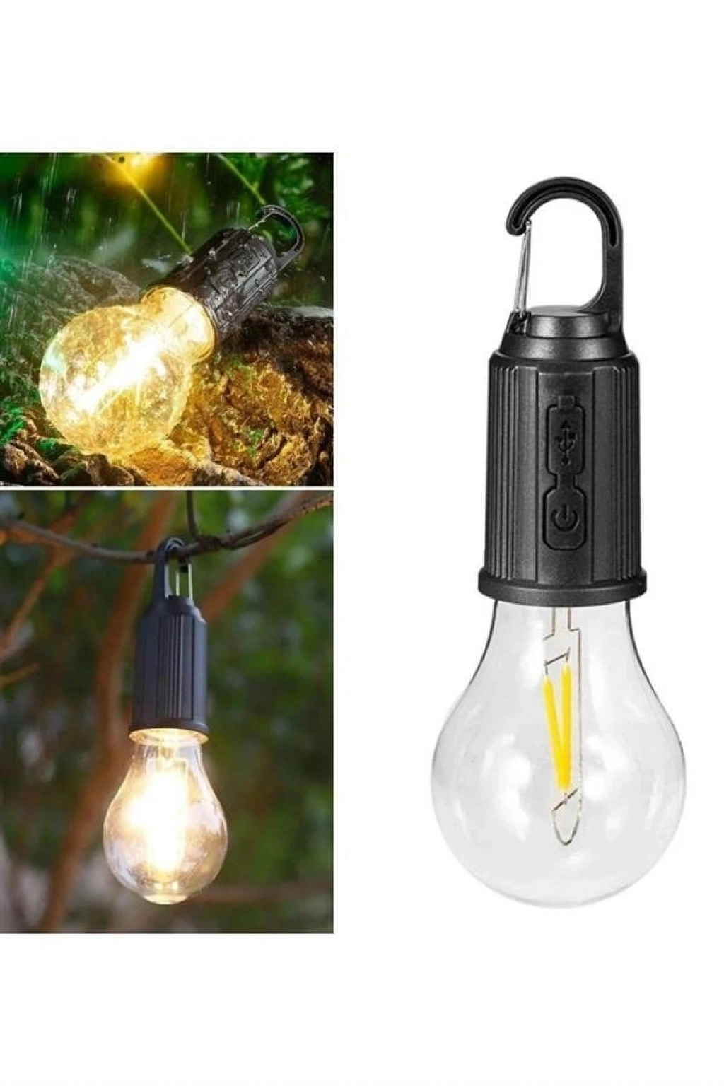 • Şarjlı Aydınlatma Ampul Tasarımlı Ambians Işık Askılı Kamp Lambası