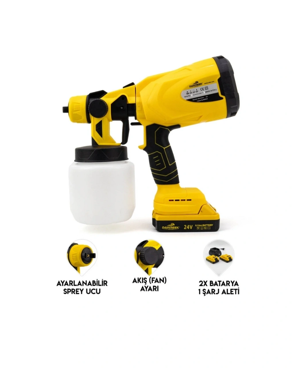 Akülü Boya Püskürtme Tabancası, evde tadilat ve yenileme işleriyle uğraşan kullanıcılar için pratik, temiz ve etkili bir boyama deneyimi sunar. Kablo karmaşası olmadan çalışan şarjlı yapısı sayesinde evin her köşesinde rahatlıkla kullanılabilir. Duvar boyama, kapı yenileme, dolap boyama ve dekoratif projeler için ideal bir çözümdür.Ayarlanabilir sprey ucu, boyanın yüzeye kontrollü şekilde uygulanmasını sağlar. Fan ayarı sayesinde boya akışı ihtiyaca göre düzenlenebilir ve yüzeyde eşit bir kaplama elde edilir. Bu özellik, özellikle ev kullanıcıları için büyük avantaj sağlar çünkü damlama ve sıçrama gibi istenmeyen sonuçların önüne geçer.Ergonomik tasarımı sayesinde ürünü kullanmak oldukça kolaydır. Hafif ve dengeli yapısı, uzun süreli çalışmalarda bile el ve bilek yorgunluğunu azaltır. Akülü sistem, priz arama derdini ortadan kaldırır ve ev içinde rahat hareket imkanı sunar.Bu püskürtme tabancası; su bazlı boyalar, vernikler ve ahşap koruyucularla uyumlu çalışabilecek şekilde tasarlanmıştır. Evdeki mobilyaların yenilenmesi, eski kapıların modern bir görünüme kavuşturulması veya bahçe eşyalarının boyanması gibi birçok alanda kullanılabilir. Boya haznesinin kolay temizlenebilir olması, kullanım sonrası bakım sürecini oldukça pratik hale getirir.Ev kullanıcıları için tasarlanan bu akülü boya tabancası, profesyonel sonuçları ev ortamına taşır. Fırça izi bırakmayan homojen kaplama özelliği sayesinde yüzeylerde pürüzsüz ve es bir görünüm elde edilir. Zaman kazandıran yapısı, ev tadilatlarını zahmetsiz hale getirir.