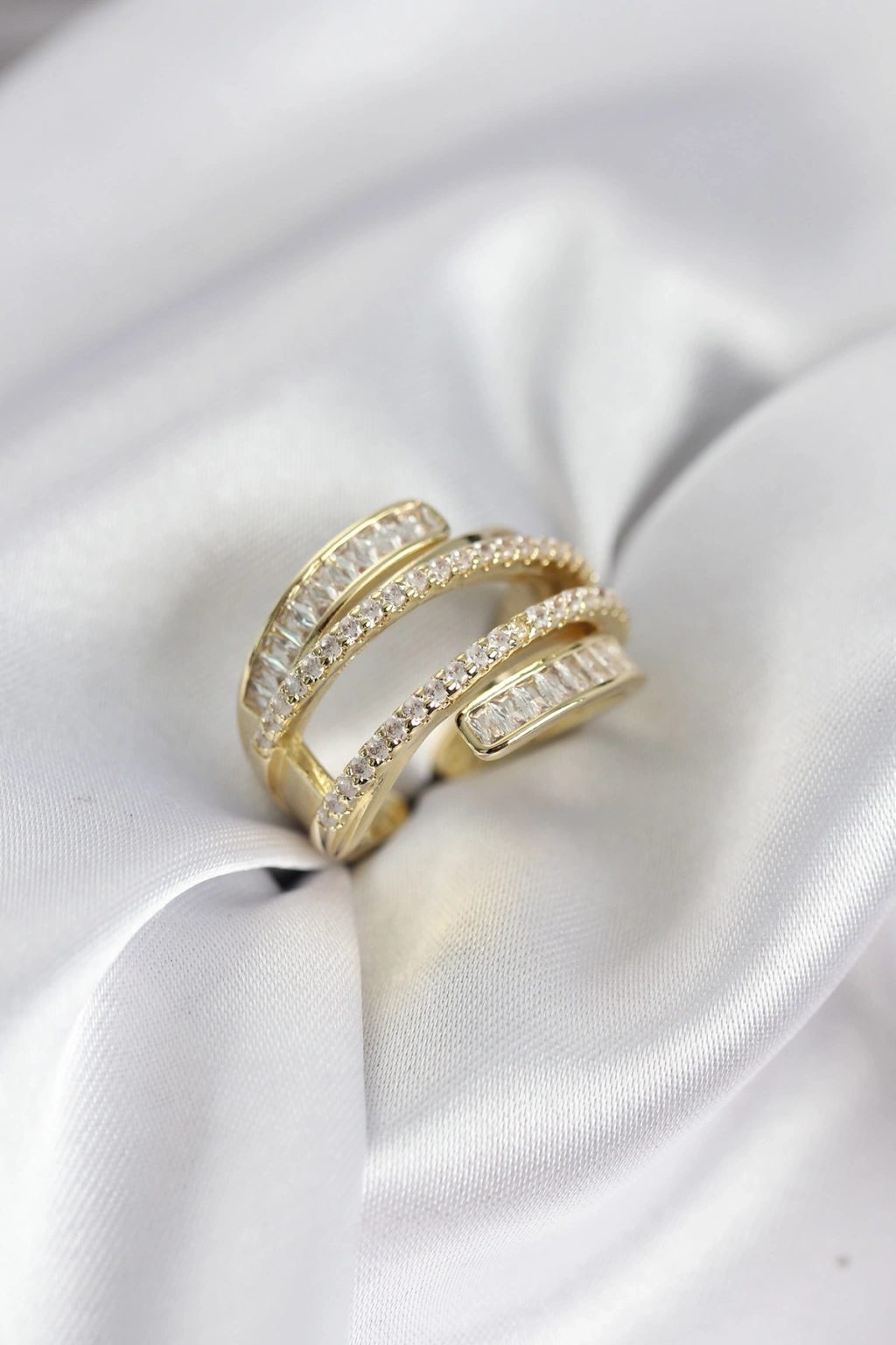 Sarmal Zirkon Baget Taşlı Gold Renk Kadın Yüzük - TJ-BYK3930