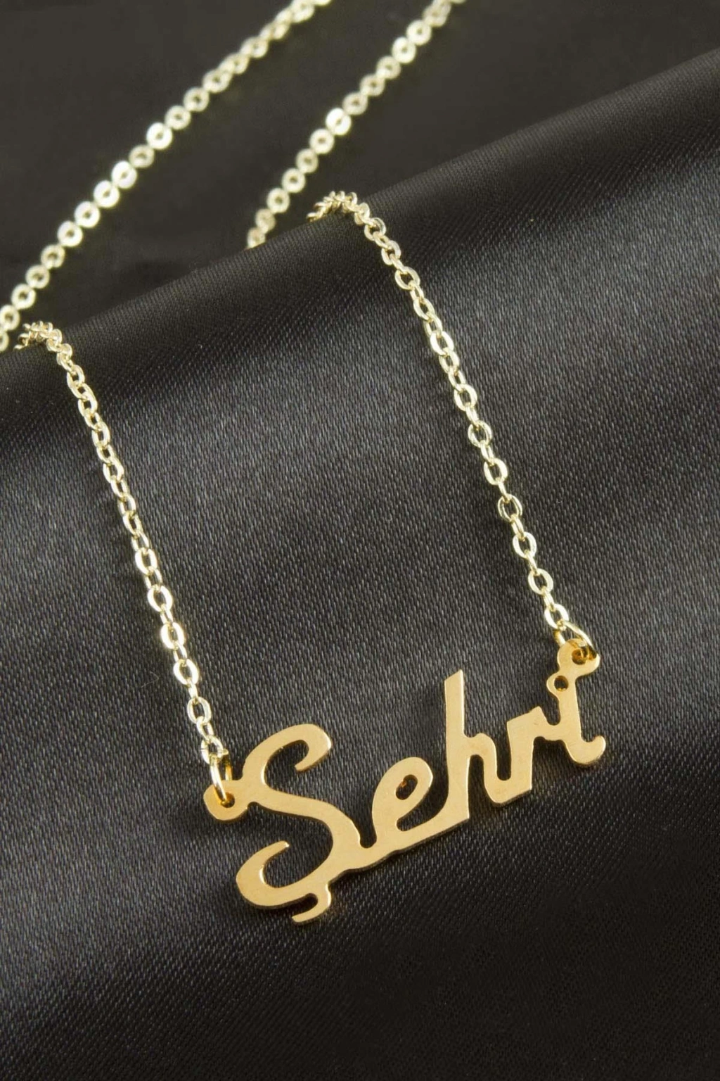 Şehri İsimli Kolye. İsimli kolye pirinç madeninden ve altın kaplamalıdır. Kişiye özel üretilmektedir.Yazdırmak istediğiniz ismi bize mesaj olarak iletmeniz gerekmektedir. Kullanıma bağlı olarak uzun süre kullanıma uygundur. Ürün malzemesi 1.sınıf kalitededir. Ürün ve zinciri sarı renktedir. Ürün zincir boyu 45 cm ve ürün üzerindeki isimler yaklaşık 3 cmdir. İsim boyları ürün ismine göre degişiklik göstermektedir.