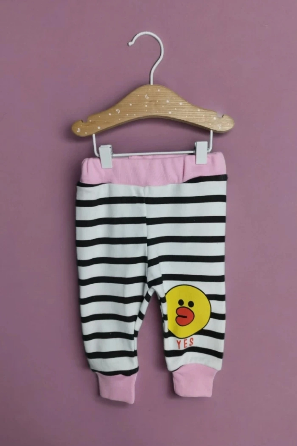 PEMBE RENK FERMUARLI DİK YAKA ÇİZGİLİ ÇİZGİLİ PAÇALARI LASTİKLİ KIZ ÇOCUK & BEBEK TAKIM
