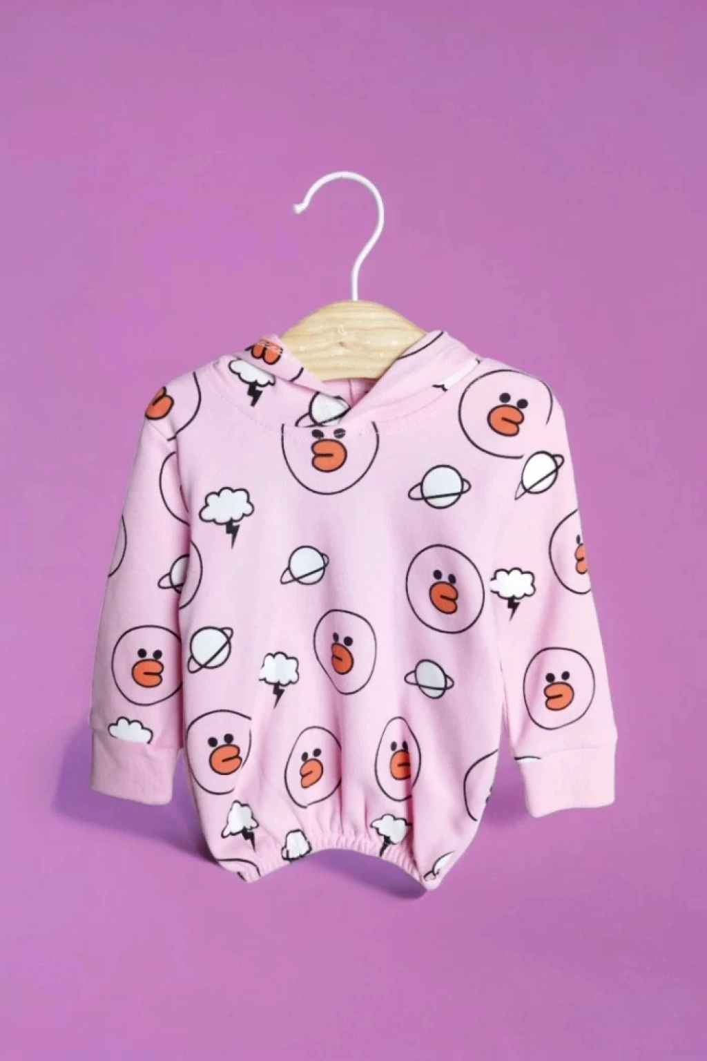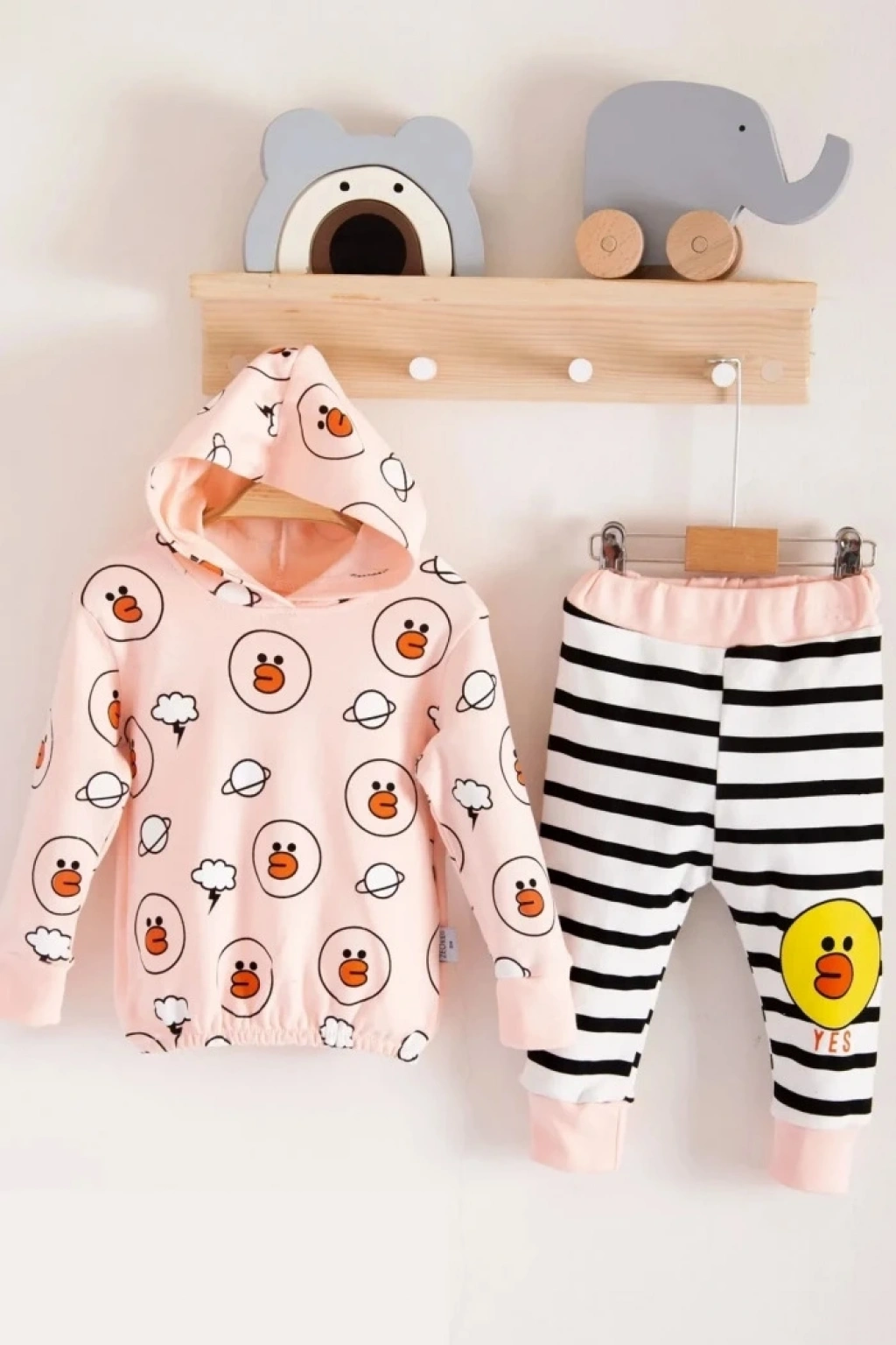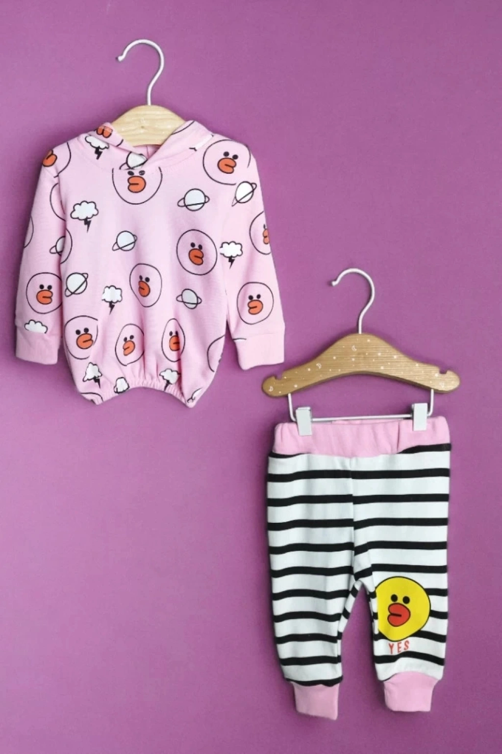 ŞEKER PEMBE KAPİŞONLU UZUN KOLLU LASTİKLİ BEL PAÇA KIZ ÇOCUK & BEBEK ALT ÜST TAKIM