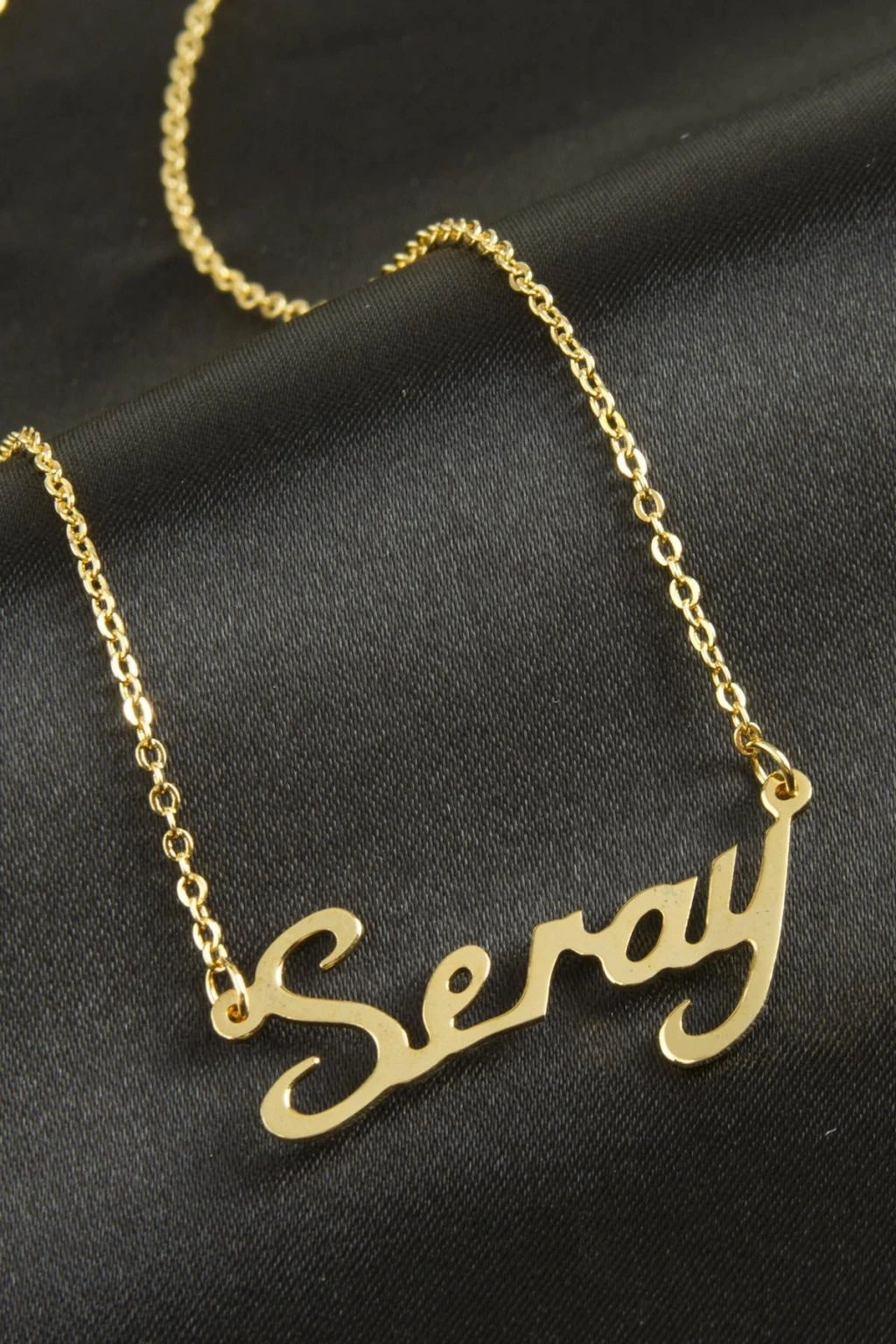 Seray isimli kolye. İsimli kolye pirinç madeninden ve altın kaplamalıdır. Kişiye özel üretilmektedir.Yazdırmak istediğiniz ismi bize mesaj olarak iletmeniz gerekmektedir. Kullanıma bağlı olarak uzun süre kullanıma uygundur. Ürün malzemesi 1.sınıf kalitededir. Ürün ve zinciri sarı renktedir. Ürün zincir boyu 45 cm ve ürün üzerindeki isimler yaklaşık 3 cmdir. İsim boyları ürün ismine göre degişiklik göstermektedir.