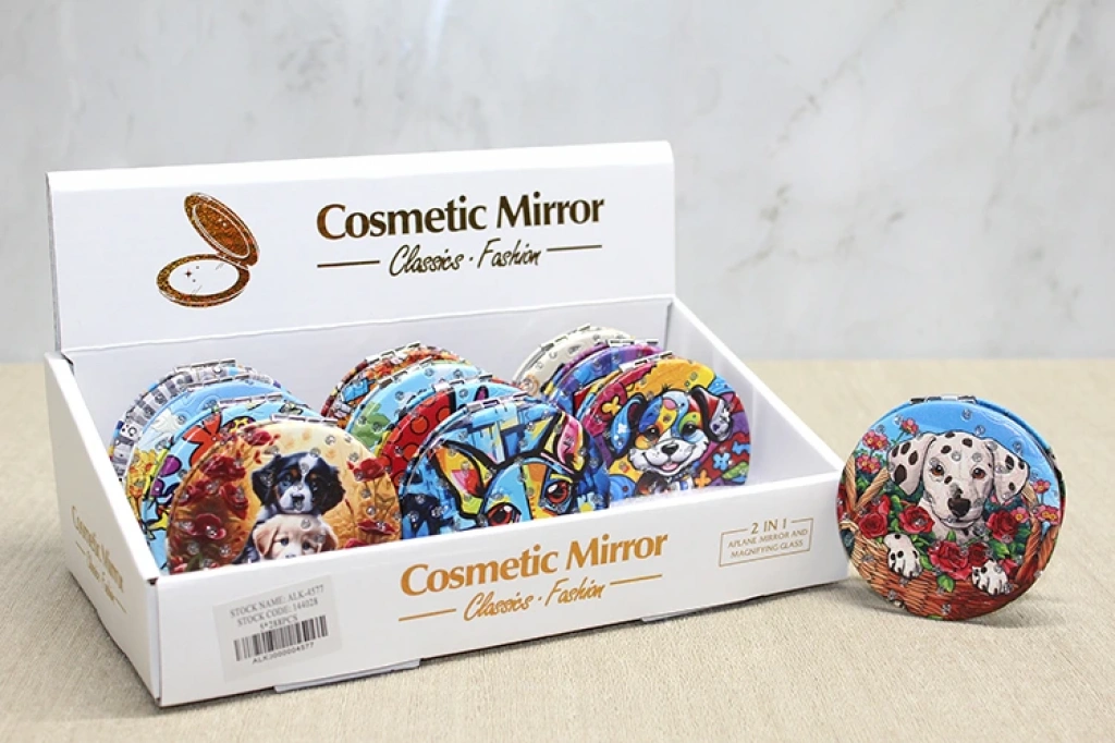 Sevimli Köpek Tasarımlı Taşlı İnce El Aynası Yuvarlak