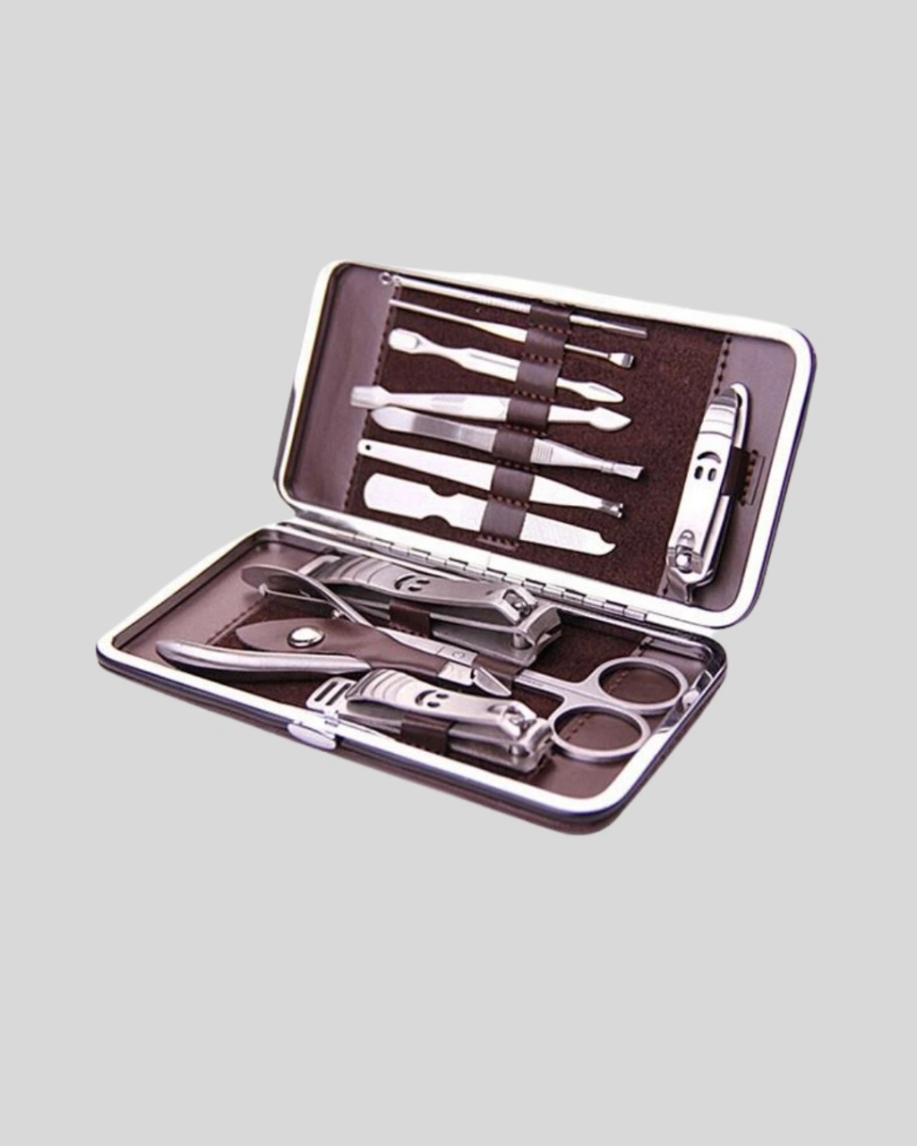 Profesyonel bakım kalitesini evinize taşıyan bu 12 parçalık kişisel bakım seti, el ve ayak bakımınızı eksiksiz yapmanız için tasarlanmıştır. Şık deri çantası, tüm parçaların düzenli şekilde saklanmasını sağlarken taşınabilirliğiyle öne çıkar. Set içerisinde kulak çekme atı, pense, farklı boyutlarda tırnak makasları, törpü, cımbız, manikür bıçağı, akne iğnesi ve çok amaçlı makas yer alır. Paslanmaz çelik malzemesi sayesinde uzun ömürlüdür ve korozyona karşı dayanıklıdır. Seyahatlerde yanınızda rahatlıkla taşıyabilir, kişisel bakımınızı her yerde sürdürebilirsiniz.
