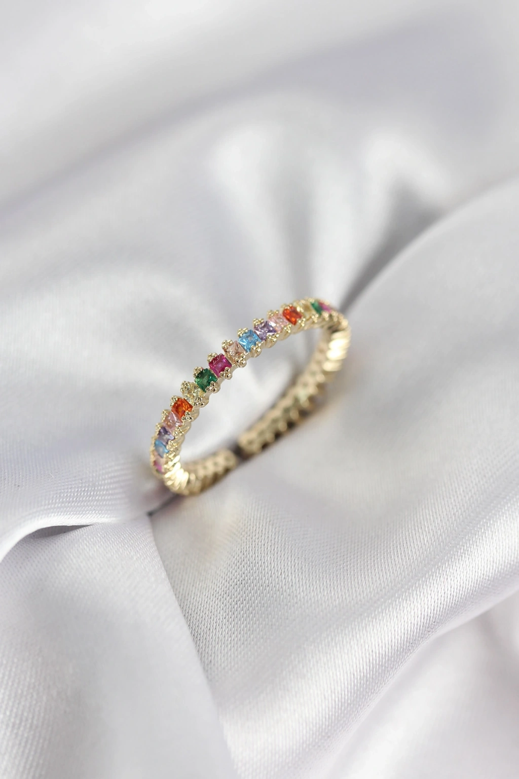 Sıralı Karışık Renkli Gold Renk Zirkon Taşlı Kadın Yüzük - TJ-BYK3928